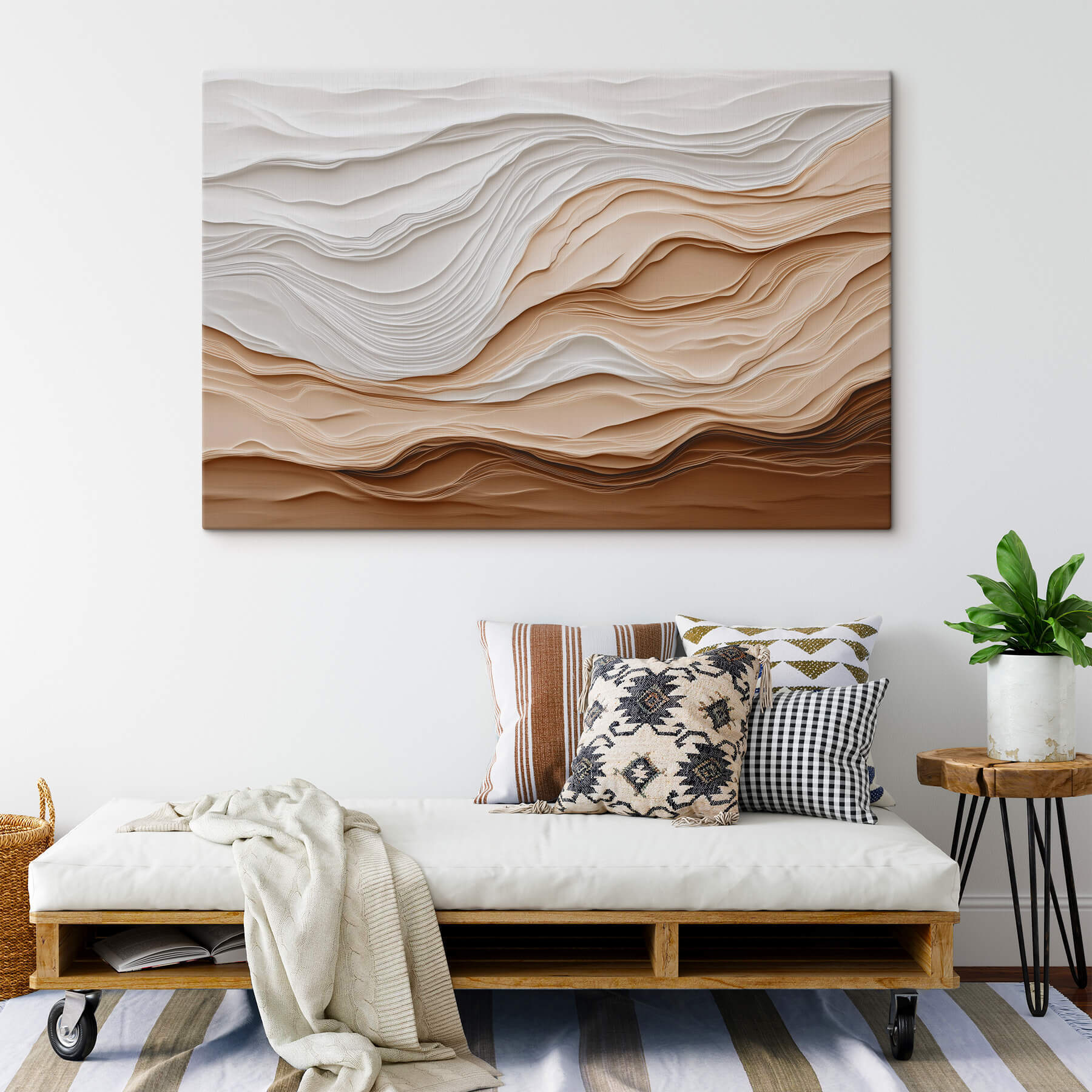 Podnieś swoją przestrzeń dzięki temu urzekającemu wydrukowi na płótnie “Obraz White and Brown Paper Cut Shapes”. To jak przytulny uścisk na ścianach, łączący miękkie biele i ciepłe brązy w pięknym tańcu. Wyobraź sobie, że wchodzisz do pokoju wypełnionego tym dziełem sztuki – nagle twoje codzienne życie wydaje się nieco bardziej artystyczne, odrobinę bardziej wyjątkowe. Idealny do przytulnych zakątków lub wyróżniających się ścian, ten kawałek zaprasza do marzeń i dryfowania. Warstwy tworzą poczucie głębi, jakby szeptały tajemnice kreatywności. Jest minimalistyczny, ale efektowny, co sprawia, że nawet nie próbuje rozpocząć rozmowy. Wyobraź sobie, jak Twoi znajomi pochylają się, zaintrygowani teksturami. To jak posiadanie nowoczesnego dzieła sztuki, które mówi: “Hej, doceniam drobniejsze rzeczy – takie jak doskonale zaparzona filiżanka kawy!”.