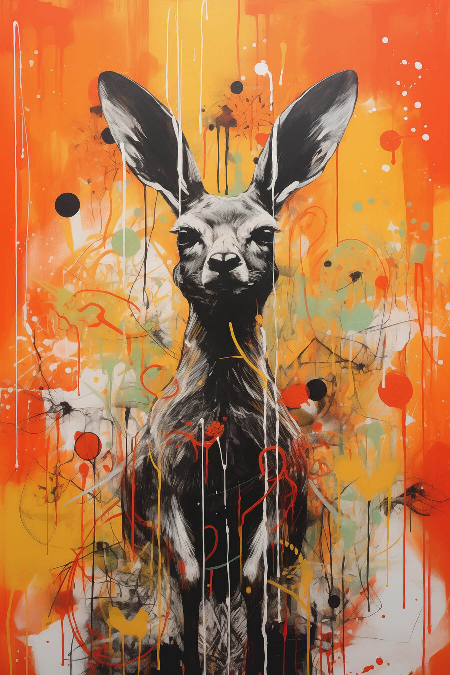 Rozjaśnij każde pomieszczenie dzięki temu wspaniałemu obrazowi na płótnie przedstawiającemu kangura! To nie jest zwykły obraz zwierzęcia; to żywy plusk koloru i energii, dzięki odważnemu pomarańczowemu tłu. Wyobraź sobie, że wchodzisz do swojego salonu i witają Cię te wielkie, zaciekawione oczy i wyraziste uszy. To jak posiadanie kapryśnego przyjaciela na ścianie, gotowego do dzielenia się przygodowymi opowieściami. Idealny do pobudzania rozmów – a może po prostu do marzeń o przygodach w australijskim Outback. Niezależnie od tego, czy wisi w przytulnym zakątku, czy jako element dekoracyjny nad sofą, ten element wprowadza radosną atmosferę. Kto nie chciałby kangura czuwającego nad jego domem?