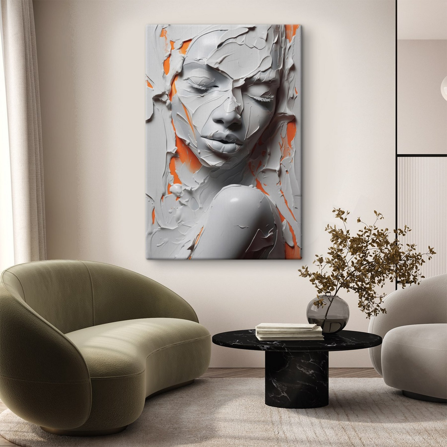 Zanurz się w świecie, w którym piękno spotyka się z tajemnicą dzięki temu drukowi na płótnie. Uderzający obraz kobiecej twarzy, otoczonej gładką warstwą białej farby, przyciąga uwagę i rozpala ciekawość. To jak przemyślana przerwa w tętniącym życiem dniu – chwila, która zachęca do refleksji. Wyobraź sobie ten żywy obraz wiszący w przytulnym zakątku lub nowoczesnym salonie, zachęcający do rozmowy przy kawie lub cichej kontemplacji podczas wieczornego odpoczynku. Ciepła, prześwitująca pomarańcza dodaje odpowiedniej szczypty radości, sprawiając, że jest to coś więcej niż tylko sztuka – to powiew świeżego powietrza dla każdej przestrzeni. Zdecydowanie przyciąga wzrok!