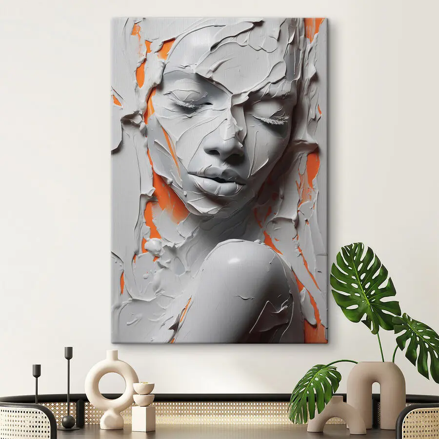 Zanurz się w świecie, w którym piękno spotyka się z tajemnicą dzięki temu drukowi na płótnie. Uderzający obraz kobiecej twarzy, otoczonej gładką warstwą białej farby, przyciąga uwagę i rozpala ciekawość. To jak przemyślana przerwa w tętniącym życiem dniu – chwila, która zachęca do refleksji. Wyobraź sobie ten żywy obraz wiszący w przytulnym zakątku lub nowoczesnym salonie, zachęcający do rozmowy przy kawie lub cichej kontemplacji podczas wieczornego odpoczynku. Ciepła, prześwitująca pomarańcza dodaje odpowiedniej szczypty radości, sprawiając, że jest to coś więcej niż tylko sztuka – to powiew świeżego powietrza dla każdej przestrzeni. Zdecydowanie przyciąga wzrok!