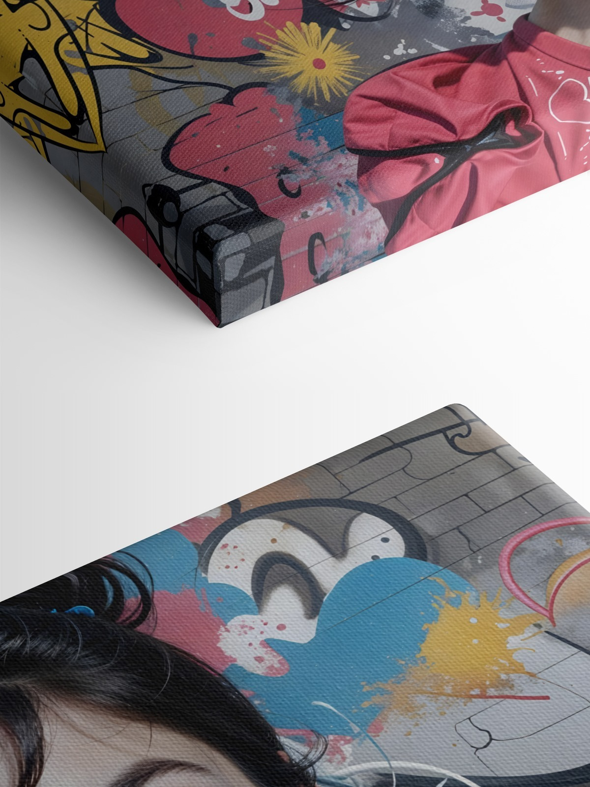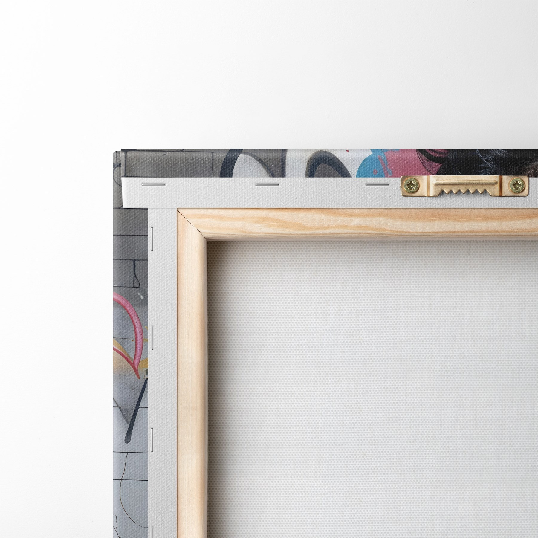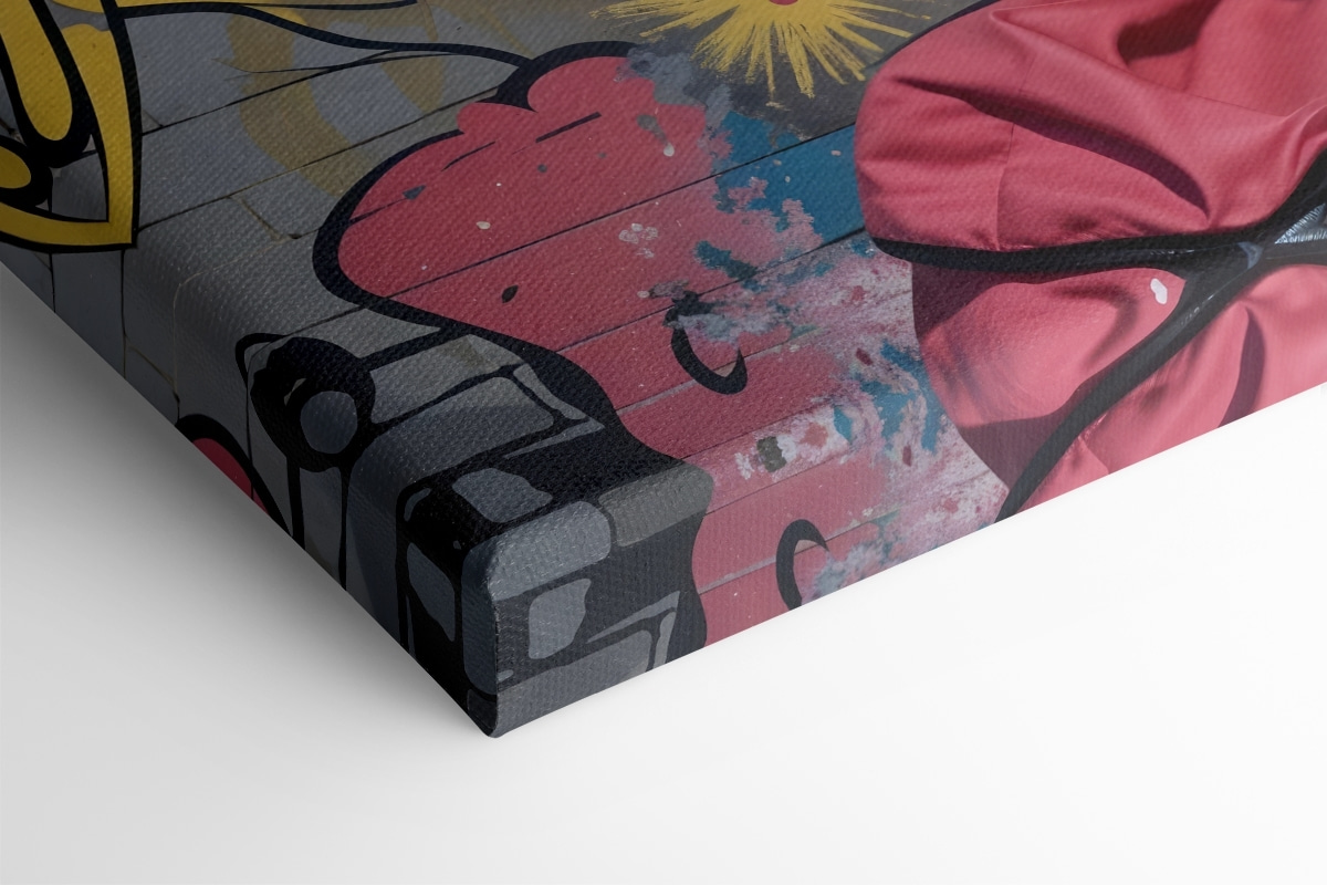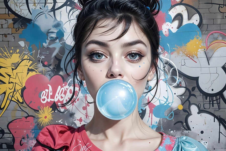 Dodaj odrobinę zabawy do każdego pomieszczenia dzięki temu żywemu drukowi na płótnie, przedstawiającemu fajną dziewczynę dmuchającą bańkę gumy balonowej tak dużą, jak jej marzenia. Umieszczony na pełnym kolorów tle graffiti, wnosi do wnętrza zabawny, uliczny klimat. Wyobraź sobie to dzieło wiszące w salonie, a może nawet w przytulnym kącie, w którym zbierają się przyjaciele – z pewnością wywoła rozmowy i uśmiechy. Ta sztuka szepcze o beztroskich dniach, przypominając nam o delektowaniu się małymi chwilami, takimi jak idealna bańka lub dobrze spędzony dzień. Idealny dla każdego, kto chce nadać swojemu wystrojowi osobowości.