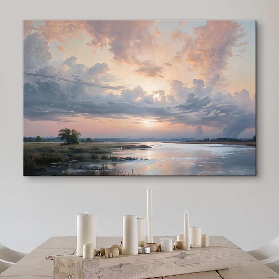 Ten oszałamiający wydruk na płótnie przedstawia spokojny zbiornik wodny całowany przez delikatne fale i majestatyczne drzewo, a wszystko to pod niebem udrapowanym sennymi chmurami. Wyobraź sobie, że każdego ranka budzisz się z takim widokiem – to jak zaproszenie do głębokiego oddechu i zanurzenia się w pięknie natury. Ten obraz to nie tylko sztuka; to kawałek spokoju, idealny na każdą ścianę, która błaga o odrobinę osobowości. Niezależnie od tego, czy rozjaśnia przytulny salon, czy dodaje odrobinę spokoju do domowego biura, szepcze historie o spokojnych popołudniach nad wodą. Ponadto może sprawić, że odwiedzający zatrzymają się i powiedzą: “Wow, skąd to masz?”. To tak, jakby mieć własną małą ucieczkę w domu!
