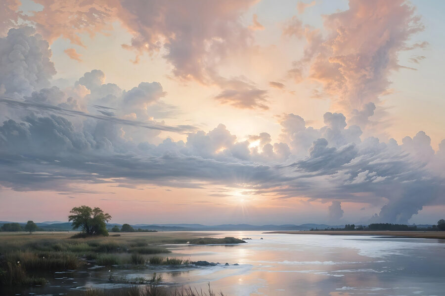 Ten oszałamiający wydruk na płótnie przedstawia spokojny zbiornik wodny całowany przez delikatne fale i majestatyczne drzewo, a wszystko to pod niebem udrapowanym sennymi chmurami. Wyobraź sobie, że każdego ranka budzisz się z takim widokiem – to jak zaproszenie do głębokiego oddechu i zanurzenia się w pięknie natury. Ten obraz to nie tylko sztuka; to kawałek spokoju, idealny na każdą ścianę, która błaga o odrobinę osobowości. Niezależnie od tego, czy rozjaśnia przytulny salon, czy dodaje odrobinę spokoju do domowego biura, szepcze historie o spokojnych popołudniach nad wodą. Ponadto może sprawić, że odwiedzający zatrzymają się i powiedzą: “Wow, skąd to masz?”. To tak, jakby mieć własną małą ucieczkę w domu!