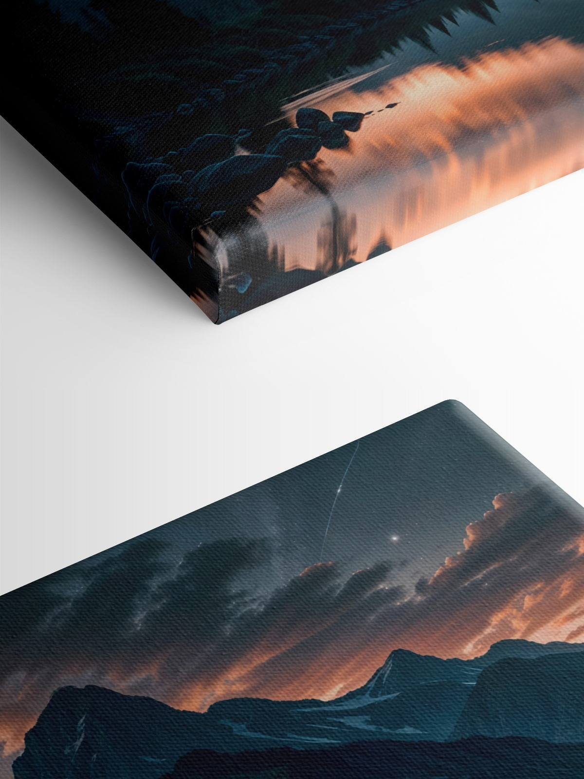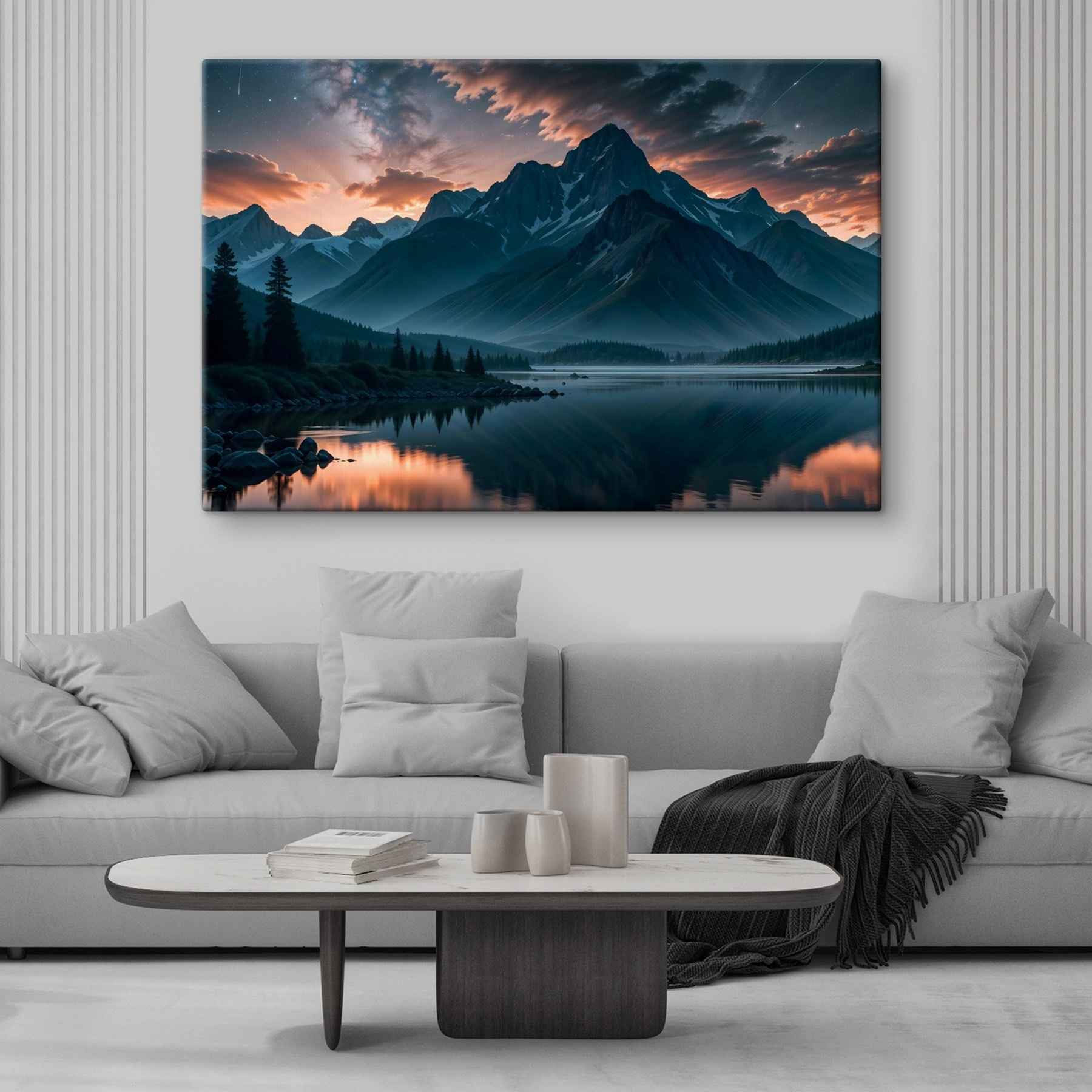 Wyobraź to sobie: spokojne jezioro odbijające majestatyczne góry, pocałowane delikatnym blaskiem zachodu słońca. Ten wydruk na płótnie to nie tylko sztuka; to chwila zamrożona w czasie, gotowa przenieść każdego, kto na nią spojrzy, na łono natury. Wyobraź sobie, że popijasz kawę, zatracając się w tych głębokich błękitach i ciepłych odcieniach. To tak, jakby mieć w domu kawałek natury, bez robaków i pogody. Dodatkowo, zachęca do rozmów! Goście będą zachwyceni jego pięknem, idealnym do wywołania efektu “wow” w salonie. Codzienne przypomnienie, że przygoda jest na wyciągnięcie ręki.