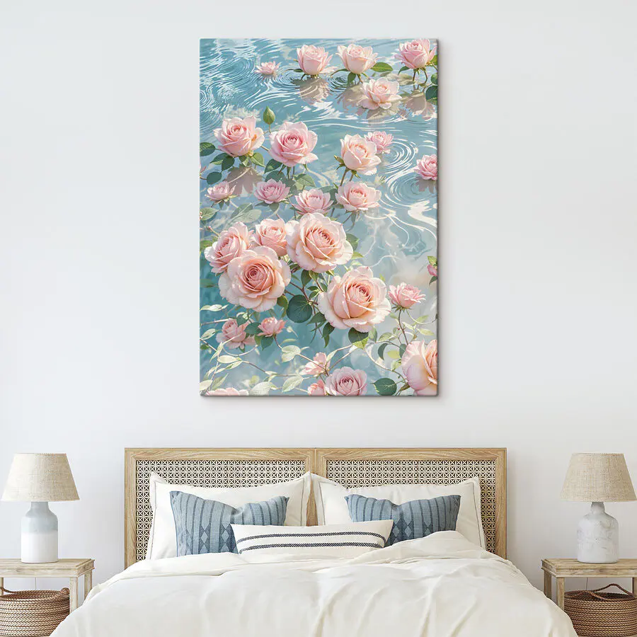 Rozjaśnij każdą przestrzeń dzięki tym wspaniałym wydrukom na płótnie przedstawiającym różowe kwiaty pływające spokojnie w wodzie. To jak przeniesienie odrobiny natury do swojego domu. Wyobraź sobie, że przechodzisz obok tego dzieła i czujesz ogarniający Cię spokój, jakbyś spacerował po spokojnym ogrodzie. Delikatne odcienie kwiatów wyskakują na tle łagodnych fal, tworząc żywą, ale kojącą atmosferę. Idealny do salonu, sypialni lub dowolnego zakątka, który potrzebuje odrobiny piękna. Kto nie chciałby takiej elegancji na swojej ścianie? To kwiatowa sztuka z marzycielskim akcentem, zachęcająca do uśmiechu i słodkich snów.
