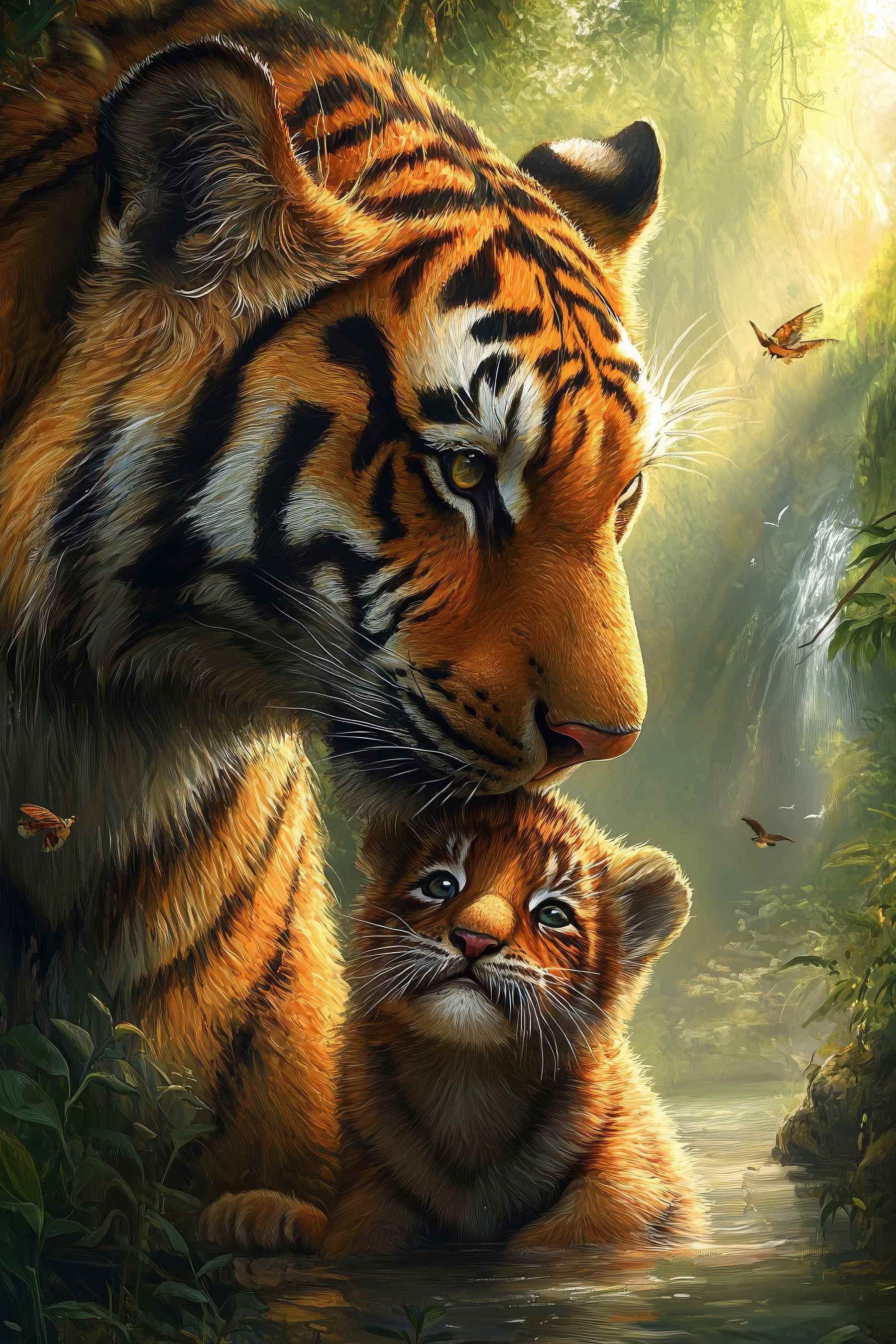 Zanurz się w dziczy dzięki temu oszałamiającemu drukowi na płótnie przedstawiającemu tygrysa i jego urocze młode, idealnie osadzone w bujnej dżungli. Spojrzenie tej małej puchatej kulki po prostu chwyta za serce, prawda? Wyobraź sobie, że to dzieło zdobi przytulny kącik, wywołując rozmowy, a może nawet kilka marzeń o safari i oświetlonych słońcem szlakach. Żywe kolory wprowadzają odrobinę natury do wnętrza, przypominając wszystkim o pięknie tuż za naszymi drzwiami. To tak, jakby mieć mały kawałek dzikiej przyrody w swoim domu! Idealny dla miłośników zwierząt lub każdego, kto chce dodać trochę zadziornego uroku do swojego wystroju. Poza tym, kto nie chciałby codziennej dawki słodkości?