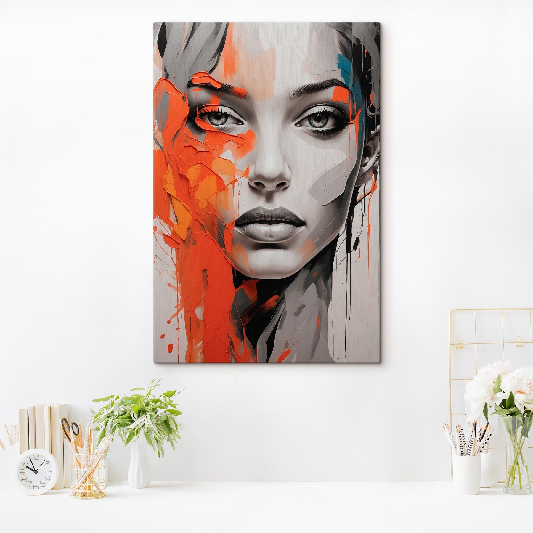 Ten wydruk na płótnie jest jak odrobina osobowości na ścianie. Wyobraź sobie uderzającą kobietę z żywą pomarańczową farbą rozciągającą się na jej twarzy, uchwycenie tego odważnego ducha, którego wszyscy potrzebujemy od czasu do czasu. To nie tylko sztuka, to klimat. Dramatyczny kontrast między jej rysami a żywymi kolorami przyciąga, zachęcając do rozmowy, a może nawet odrobiny inspiracji. Umieszczenie tego obrazu w przytulnym kąciku do czytania lub w tętniącym życiem salonie? Natychmiastowy urok. Idealny dla każdego, kto uwielbia łączyć pasję z odrobiną nowoczesnego stylu. Kto by się na to nie uśmiechnął?
