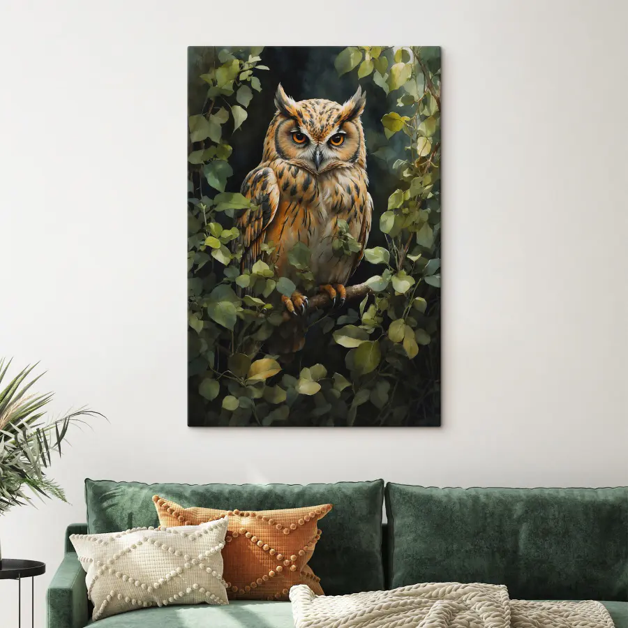 Poznaj swojego nowego ulubionego przyjaciela ściennego – oszałamiający wydruk na płótnie przedstawiający sowę siedzącą z gracją na gałęzi, otoczoną bujną zielenią. Ten czarujący obraz to nie tylko sztuka; to jak zaproszenie natury do swojego salonu. Wyobraź sobie przytulne wieczory z tym majestatycznym stworzeniem czuwającym nad pokojem. Żywe kolory i misterne detale sprawiają, że czuje się jak żywy, prawie tak, jakby mógł na ciebie krzyczeć po zmroku.