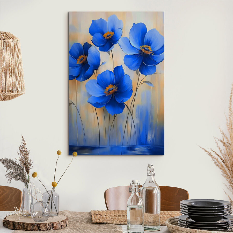 Wyobraź sobie, że wchodzisz do pokoju, w którym witają Cię te odważne niebieskie kwiaty, płatki pomalowane w żywych odcieniach, które mogą rozjaśnić nawet najbardziej deszczowy dzień. Ten wydruk na płótnie to nie tylko sztuka; to jak przeniesienie świeżego wiosennego ogrodu do wnętrza, bez kichania z powodu pyłków. Każdy kwiat ma swoją własną osobowość, prawie tak, jakby rozmawiały na słonecznym polu. Wyobraź sobie, że przyjmujesz przyjaciół – każdy może być przyciągnięty przez piękno, wywołując śmiech i historie. To radosna mieszanka natury i koloru, podnosząca każdą przestrzeń do małego kawałka raju. Idealny do przytulnych zakątków lub tej jednej ściany, która potrzebuje odrobiny miłości!