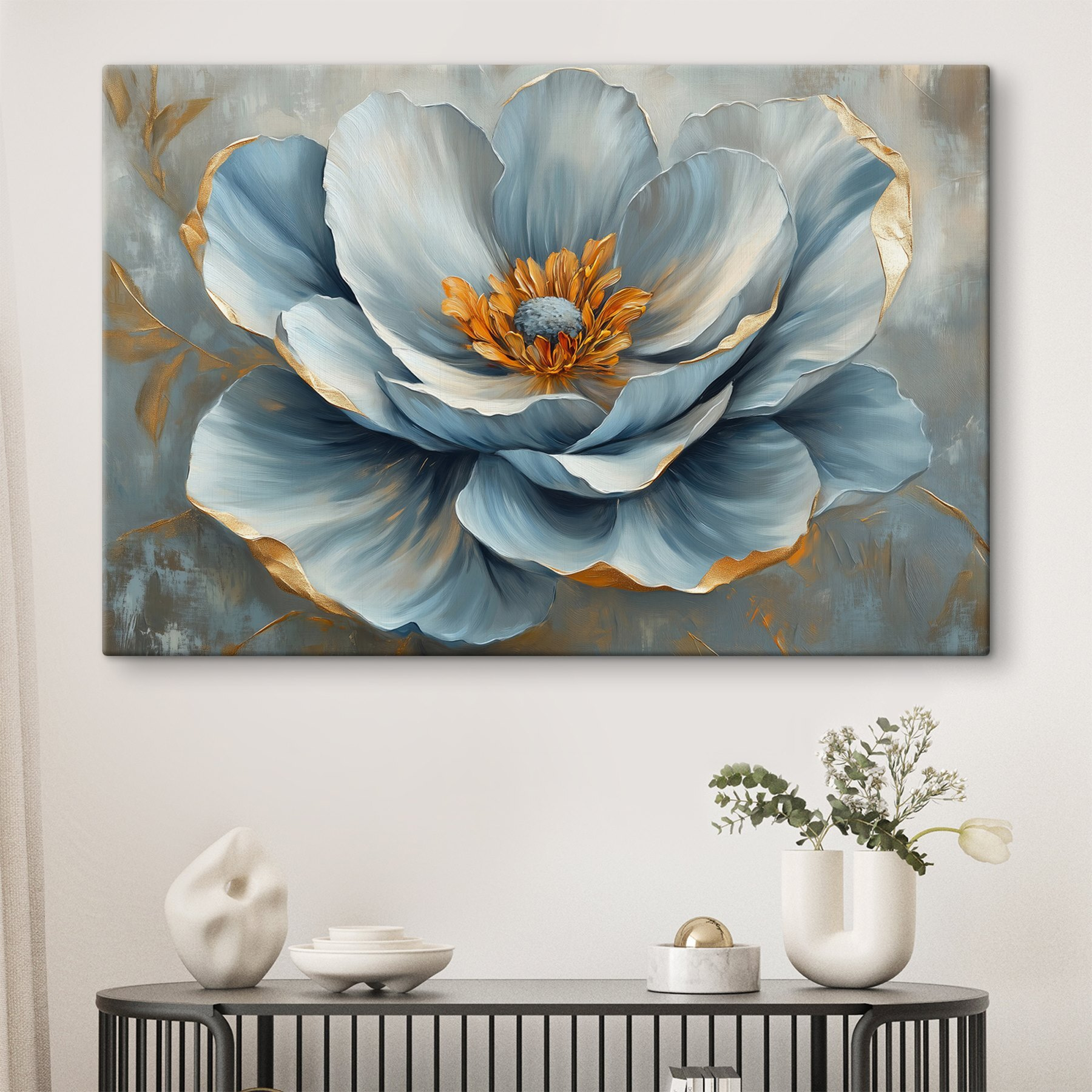 Przekształć każde pomieszczenie w spokojną ucieczkę dzięki temu drukowi na płótnie przedstawiającemu delikatny niebieski kwiat skąpany w miękkich odcieniach. To jak przeniesienie ogrodu do wnętrza bez konewki. Wyobraź sobie to piękno wiszące w przytulnym zakątku, gdzie delikatnie szepcze spokojne wibracje za każdym razem, gdy spojrzysz w jego stronę. Delikatne kolory zachęcają do relaksu, dzięki czemu idealnie nadają się do kącika czytelniczego lub spokojnej sypialni. Poza tym, kto nie chciałby, aby jego ściany rozkwitły? To jak posiadanie małego, szczęśliwego sekretu za każdym razem, gdy przechodzisz obok, wywołując radość i odrobinę kaprysu w codziennym życiu.