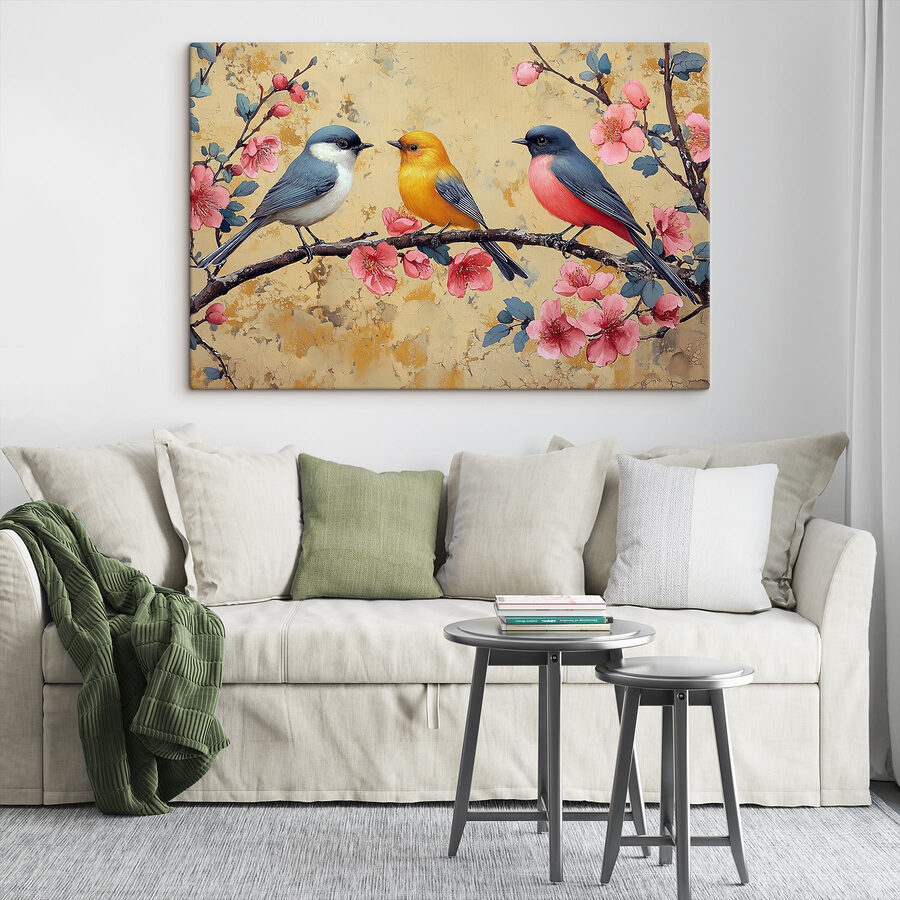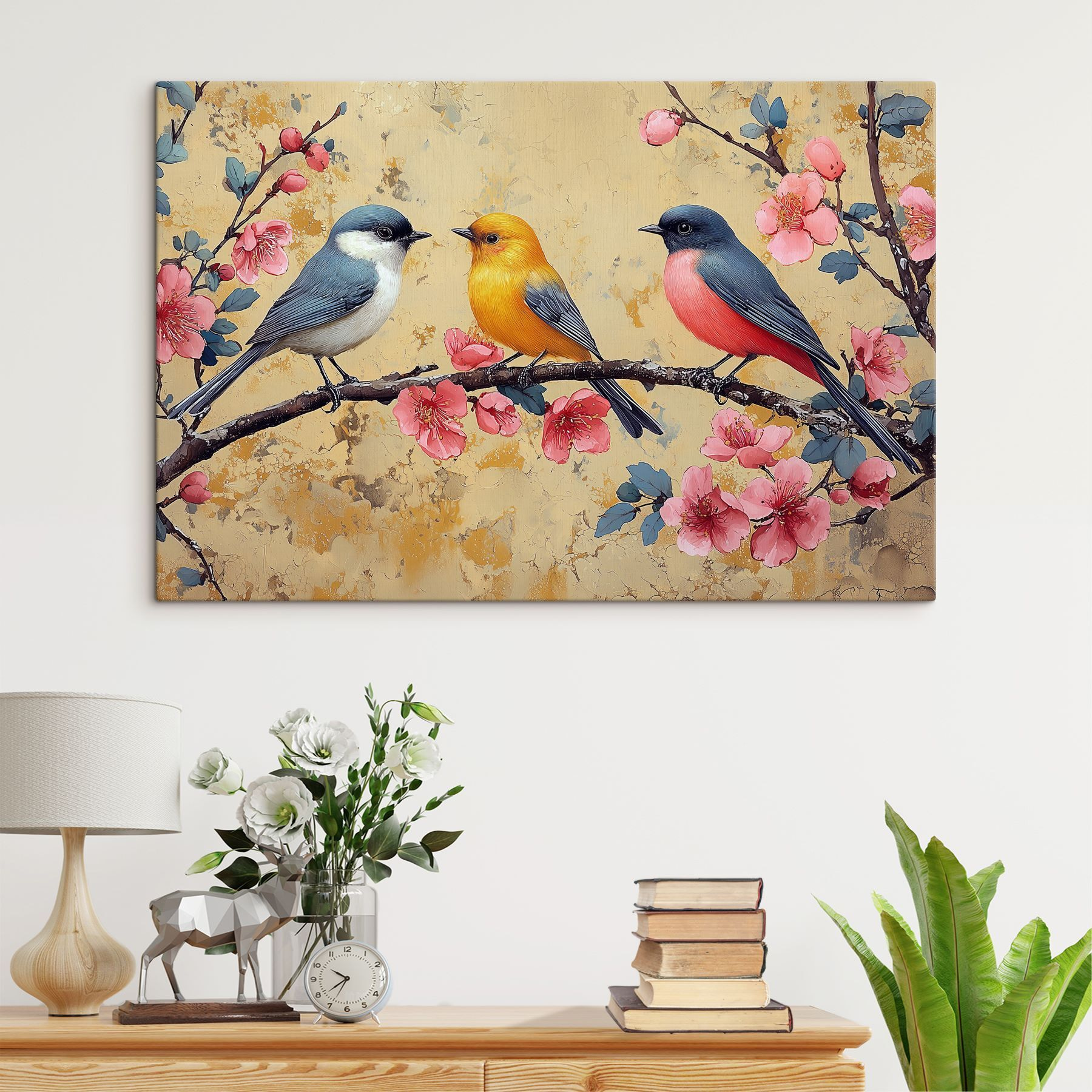Rozjaśnij każdą przestrzeń dzięki temu uroczemu drukowi na płótnie przedstawiającemu urocze trio ptaków siedzących na gałęzi ozdobionej pięknymi kwiatami. Każdy pierzasty przyjaciel wnosi swoją własną plamę koloru, dodając odrobinę kaprysu natury do ścian. Wyobraź sobie ten żywy obraz wiszący w przytulnym zakątku, gdzie kradnie światło reflektorów, wywołując uśmiech za każdym razem, gdy ktoś przechodzi obok. To tak, jakby mieć mały kawałek natury w domu – idealny dla miłośników przyrody lub każdego, kto chce ożywić swój wystrój. Zawieś go, usiądź wygodnie i pozwól, by zawładnęły nim radosne wibracje!