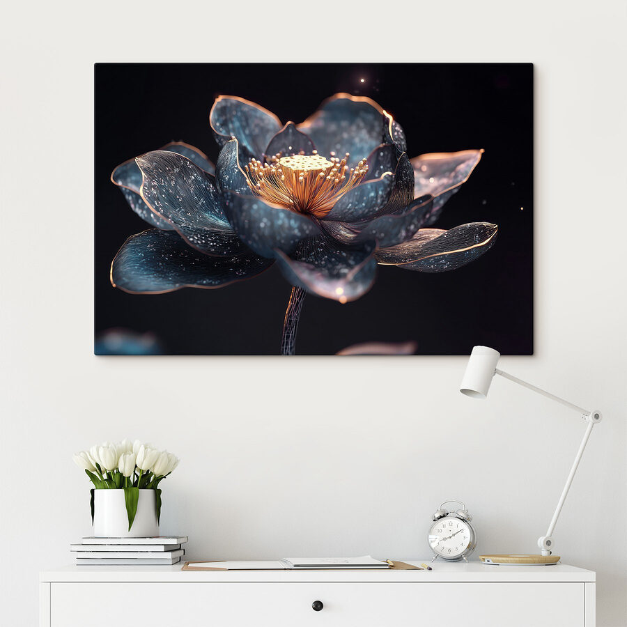 Odmień każde pomieszczenie dzięki oszałamiającemu obrazowi na płótnie “Enchanting Bloom in Dark Hues”. To arcydzieło przedstawia piękny kwiat w głębokich, żywych odcieniach, które wydają się tańczyć w świetle. Wyobraź sobie, że wchodzisz do pomieszczenia i od razu czujesz się lepiej, jakby wiosna wpadła z wizytą, nawet w deszczowy dzień. Sposób, w jaki delikatne płatki mienią się na ciemnym tle, dodaje przytulnego, a jednocześnie dramatycznego charakteru – idealnego dla pustej ściany, która potrzebuje odrobiny miłości. Jest jak szept natury, który przynosi elegancję i ciepło. Powieś go w miejscu, w którym będziesz go często widzieć i pozwól, by jego urok rozniecał radość każdego dnia!