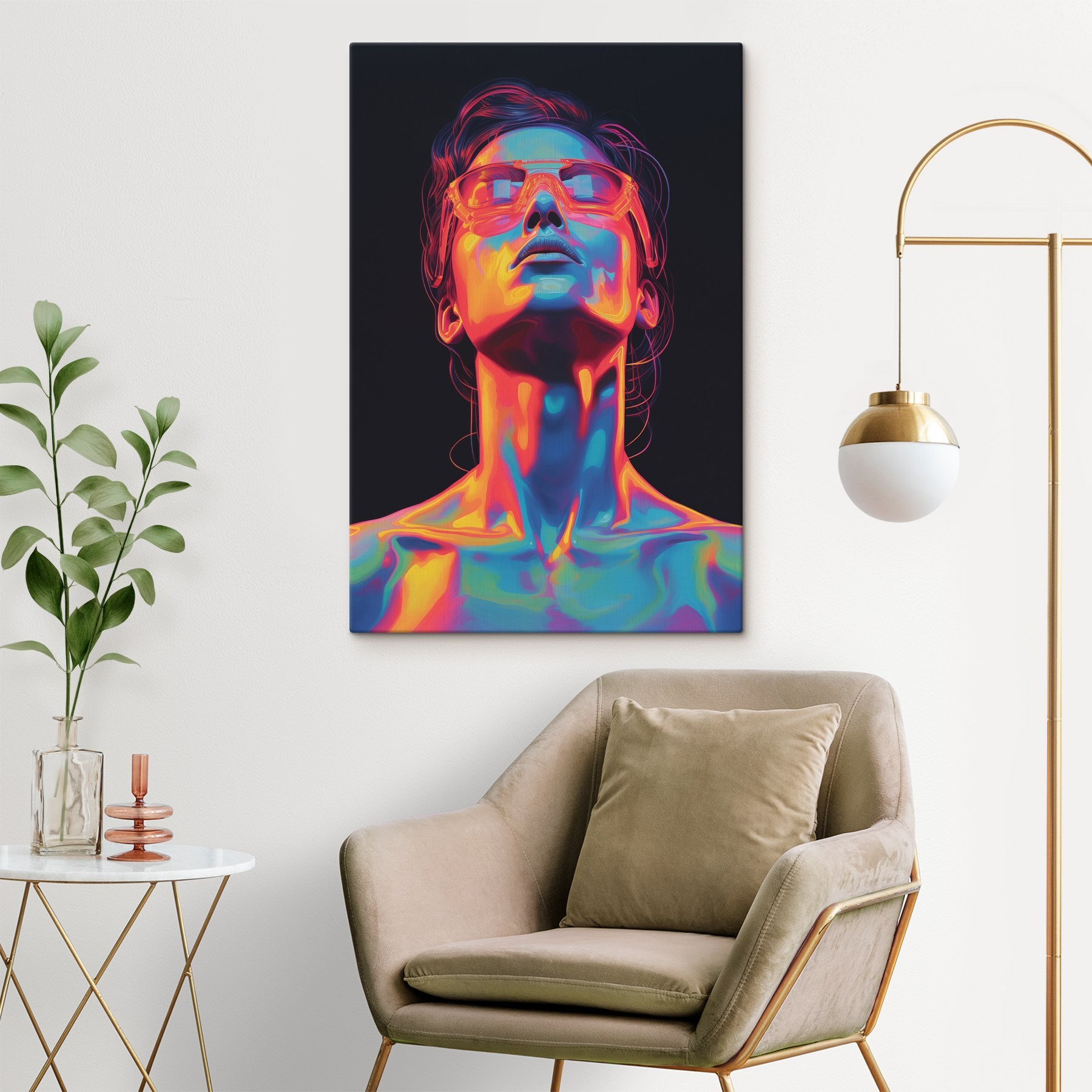 Podnieś każdą przestrzeń dzięki temu uderzającemu wydrukowi na płótnie przedstawiającemu kobietę w okularach, pełną żywych kolorów. To jak posiadanie odrobiny osobowości bezpośrednio na ścianie! Odważna mieszanka odcieni może wywołać uśmiech nawet w najbardziej pochmurne dni. Wyobraź sobie, że przechodzisz obok niego codziennie, czując się trochę mniej zwyczajnie, trochę bardziej zainspirowany. Idealny do przytulnego kącika do czytania lub tętniącego życiem salonu, ten kawałek dodaje dodatkowej energii, zachowując przy tym chłód bez wysiłku. Tak żywa sztuka nie tylko ozdobi ściany, ale tchnie życie w cały klimat Twojego domu!