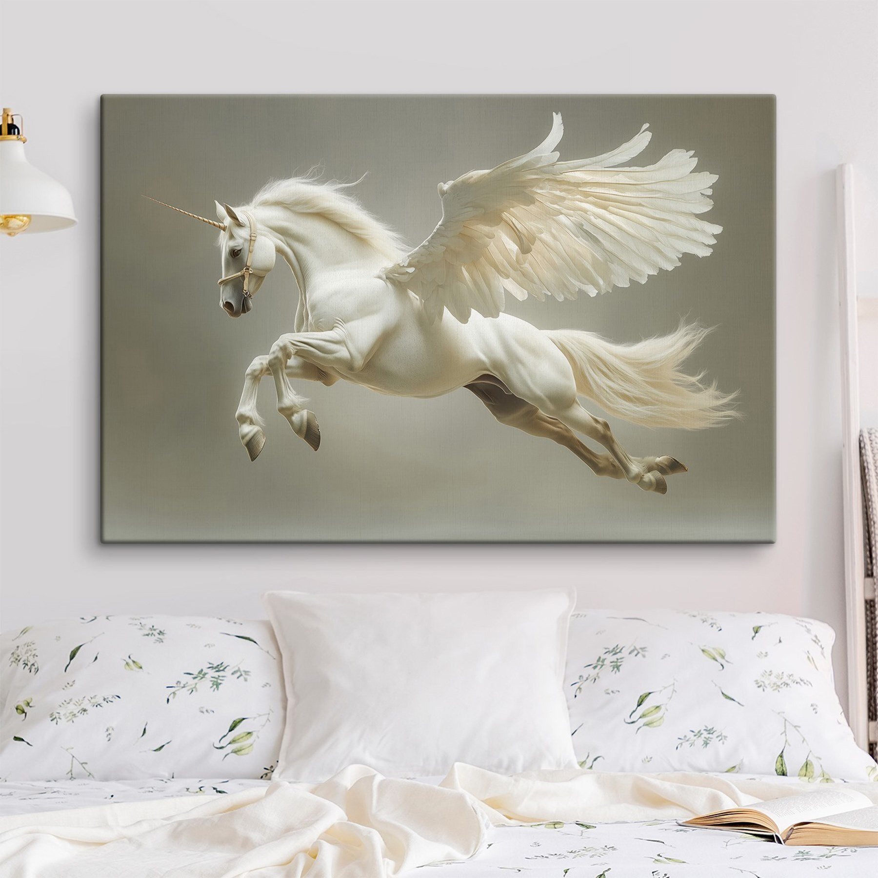 Wyobraź sobie ten wspaniały wydruk na płótnie przedstawiający białego konia ze skrzydłami, który zdobi Twoją ścianę. To nie tylko sztuka; to odrobina kaprysu, która sprawia, że uśmiechasz się za każdym razem, gdy przechodzisz obok. Wyobraź sobie to majestatyczne stworzenie szybujące wśród miękkich chmur, przypominające nam, że wyobraźnia nie zna granic. Subtelne odcienie tworzą uspokajającą atmosferę, idealną do przytulnego kącika do czytania lub tętniącego życiem salonu. Przyjaciele mogą po prostu zatrzymać się i gapić, zastanawiając się, czy mogą jeździć na tym pięknie. Podbijając serca, z pewnością wywoła radość i szczyptę magii w codziennym życiu. Czego chcieć więcej?
