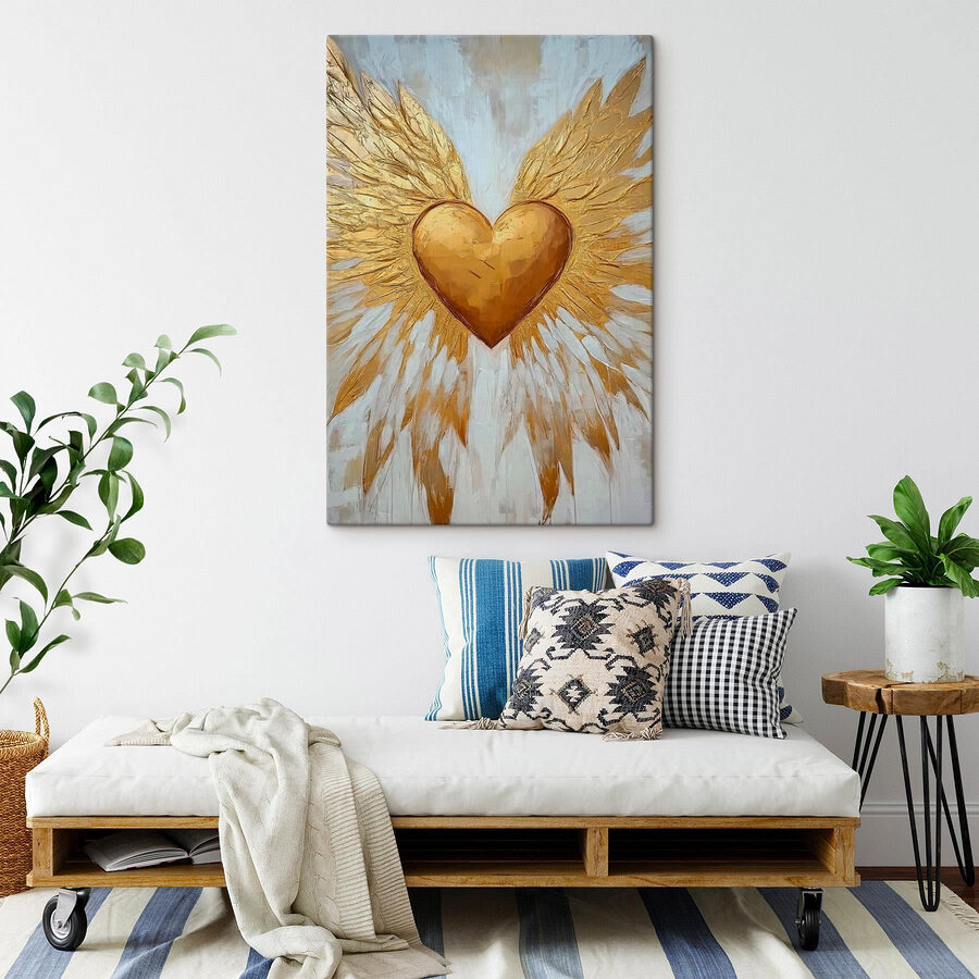 Przekształć dowolną ścianę w radosną przestrzeń dzięki temu drukowi na płótnie przedstawiającemu serce ze skrzydłami. Wyobraź sobie, że wchodzisz do przestrzeni, w której od razu robi się cieplej, jakby właśnie pojawił się przyjazny uścisk. Tętniące życiem serce wydaje się unosić, zapraszając myśli o miłości, nadziei i odrobinie kaprysu. Niezależnie od tego, czy rozjaśnia przytulny kącik do czytania, czy pobudza do rozmowy w salonie, ten element dodaje wyjątkowego akcentu. Idealny dla tych, którzy wierzą w magię odrobiny inspiracji, szepcze radość i przypomina wszystkim, aby ich serca były lekkie i wolne.