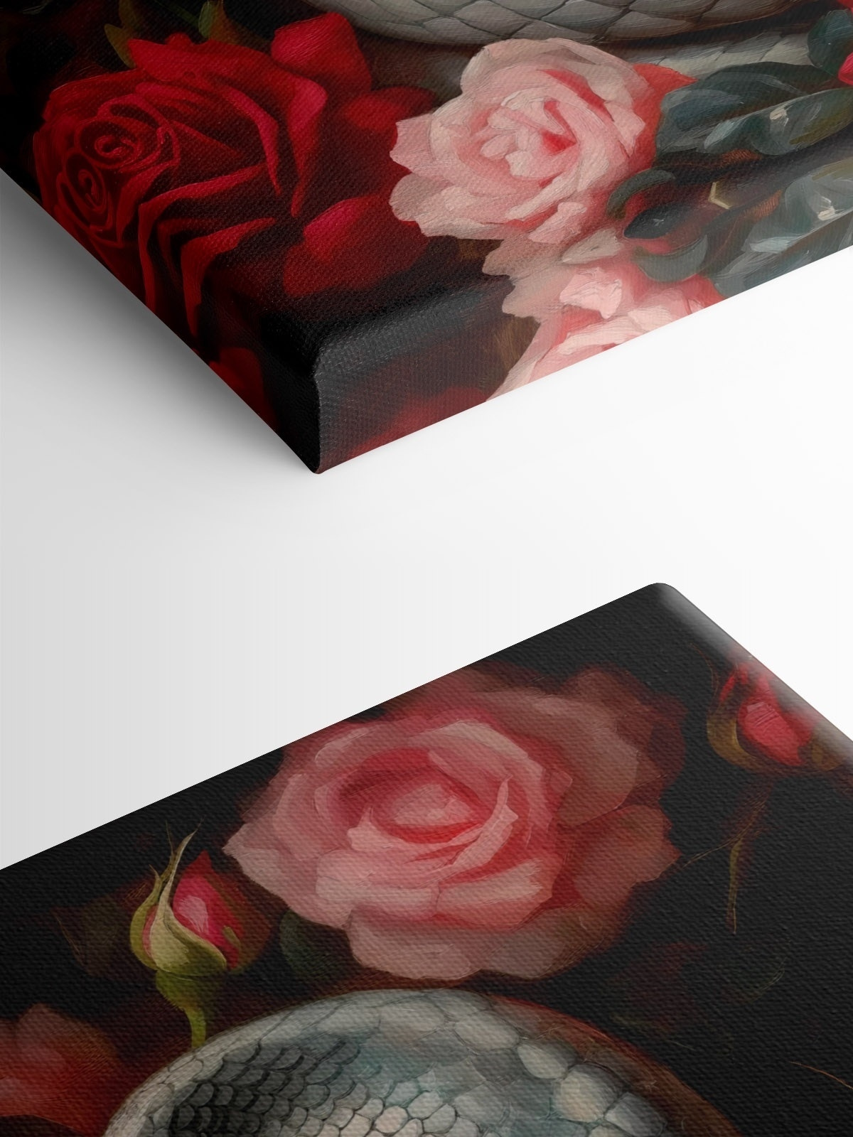 Wkrocz do świata, w którym elegancja łączy się z odrobiną intrygi. Ten wydruk na płótnie przedstawia eleganckiego węża umieszczonego wśród żywych róż, tworząc oszałamiający kontrast wizualny, który trudno zignorować. Wyobraź sobie to dzieło wiszące w przytulnym zakątku – jego urzekający design z pewnością zachęci do rozmów. Bogata kolorystyka i nieoczekiwane elementy mogą ożywić każdą przestrzeń, prawie jak sekretny ogród. Jest to idealne rozwiązanie dla tych, którzy lubią niecodzienne rozwiązania lub uwielbiają odrobinę natury w swoim wystroju. Mówimy o wyrazistym elemencie, który łączy w sobie piękno i odrobinę tajemniczości!