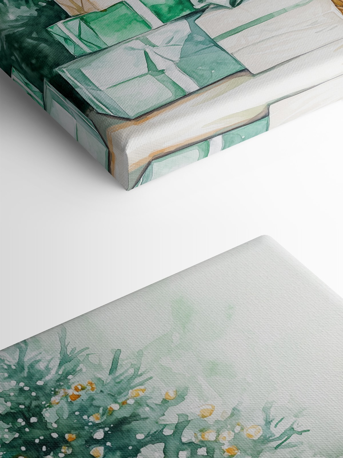 Wyobraź sobie, że wchodzisz do pokoju pachnącego sosną i ciasteczkami, i oto jest – uroczy wydruk na płótnie przedstawiający kapryśną akwarelową scenę prezentów umieszczonych pod choinką. Każdy prezent, zapakowany w delikatne odcienie, tworzy przytulną atmosferę, wywołując radość i nostalgię. Przypomina to moment, w którym masz zamiar rozpakować niespodziankę. Powieś go w salonie lub biurze, a natychmiast poprawi nastrój. Przyjaciele mogą wylegiwać się na kanapie, podziwiając go, dzieląc się śmiechem i opowieściami. Ten przedmiot jest jak ciepły uścisk w chłodny dzień – idealny, aby uczynić każdą przestrzeń bardziej świąteczną i zachęcającą.
