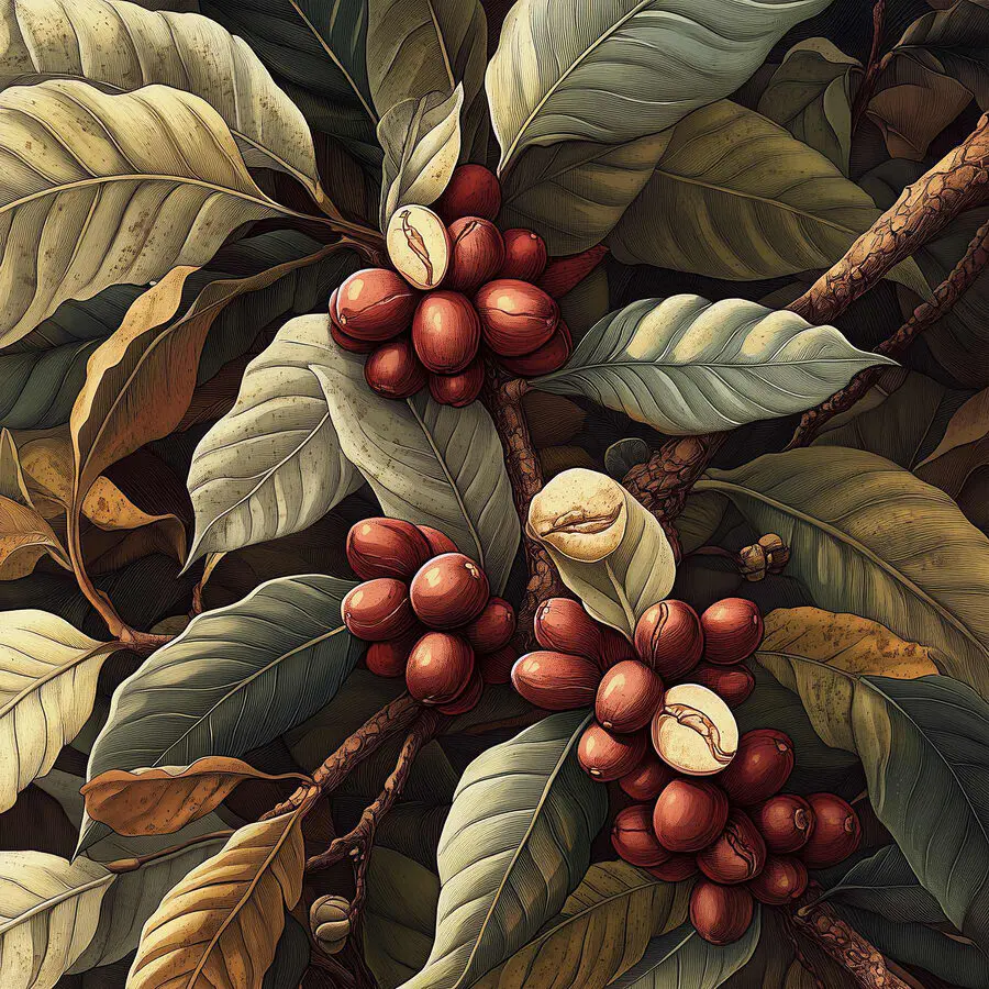 Odmień swoją przestrzeń dzięki temu wspaniałemu obrazowi na płótnie zatytułowanemu “Fresh Coffee Berries on Leafy Branches”. Wyobraź sobie, że budzisz się w otoczeniu bogatych kolorów, przypominających przytulną kawiarnię. Każdy szczegół, od żywych jagód po bujne liście, przenosi naturę prosto do Twojego domu. To jak posiadanie małego kawałka plantacji kawy, bez latających wszędzie ziaren! Idealna do kuchni lub spokojnego zakątka, ta grafika wywołuje spokojną, zachęcającą atmosferę. Znajomi mogą po prostu zapytać, gdzie znalazłeś tak przyciągający wzrok element. Kto nie chciałby codziennego przypomnienia o pięknie natury i ukłonu w stronę ukochanego rytuału picia kawy?