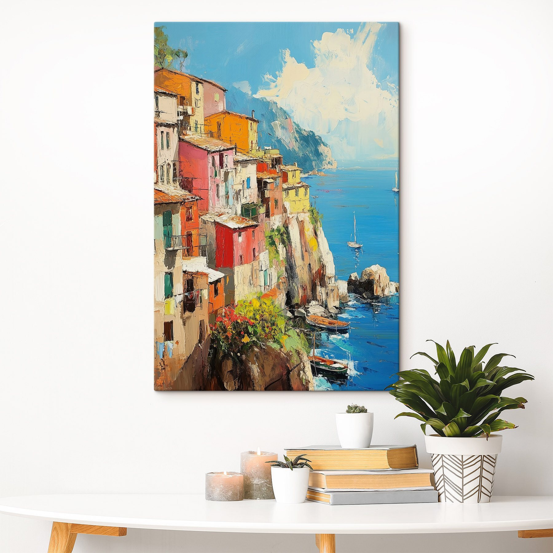 Przekształć każde pomieszczenie w przytulną ucieczkę dzięki temu żywemu drukowi na płótnie przedstawiającemu urocze miasteczko położone na klifie nad morzem. Te kolorowe budynki wydają się tańczyć w świetle słonecznym – jakby miały własną małą imprezę! Wyobraź sobie, że popijasz kawę, wpatrując się w tę scenę; to prawie tak, jakbyś słyszał fale uderzające o skały i czuł ciepłą bryzę. Idealny dla miłośników podróży lub każdego, kto szuka odrobiny koloru w swoim życiu. To dzieło to nie tylko sztuka; to zaproszenie do marzeń, wędrówek i może, tylko może, zaplanowania następnego wypadu.