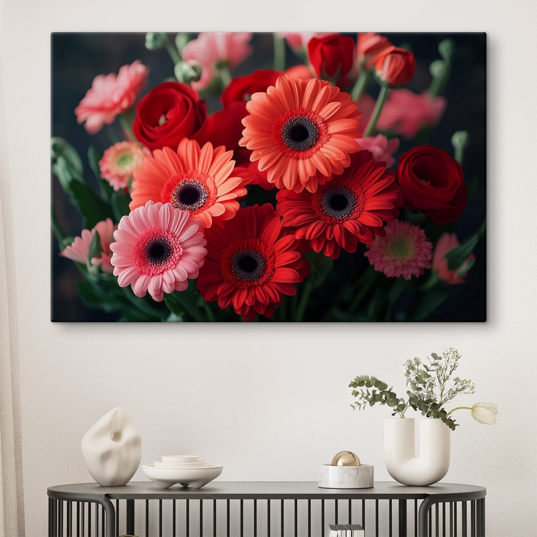 Wprowadź radosne wibracje do swojej przestrzeni dzięki obrazowi na płótnie “Bouquet of Flowers”. Pełen żywych czerwieni i delikatnych różów, jest jak wieczny wiosenny dzień, bez kichania od pyłków! Wyobraź sobie, że wchodzisz do swojego pokoju i czujesz się od razu podniesiony na duchu – te figlarne kwiaty mogą to zrobić. Idealny do przytulnego kącika lub inspirującego biura, ten element zachęca do uśmiechu, a może nawet chichotu lub dwóch. Szepcze historie o słonecznych dniach i radości, sprawiając, że każde spojrzenie staje się chwilą szczęścia. Kto by pomyślał, że kwiaty mogą wnieść do domu tyle ciepła?