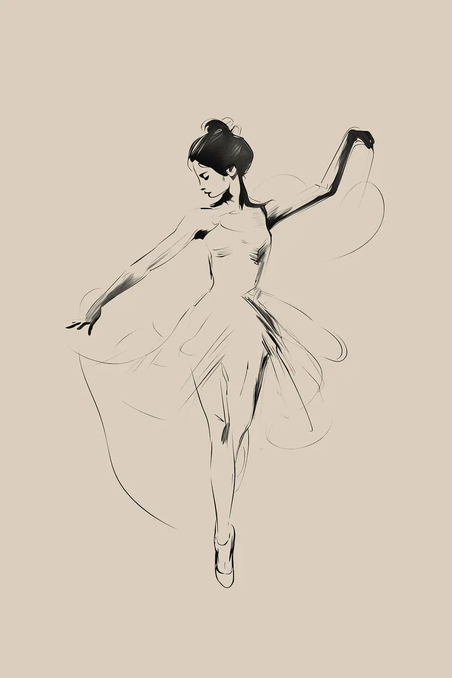Ten czarujący wydruk na płótnie przedstawia wdzięczną kobietę tańczącą, prawie jakby była gotowa do wirowania tuż po wyjściu z ramy! Wyobraź sobie ten piękny obraz wiszący w salonie – natychmiastowy początek rozmowy! Prostota czarno-białego szkicu pięknie łączy się z miękkim tłem, tworząc spokojną atmosferę, która szepcze elegancję. Wyobraź sobie, że po długim dniu siadasz na kanapie i po prostu się w nią wpatrujesz – to jak mini sesja medytacyjna. Idealny do dodania odrobiny artystycznego uroku do każdej przestrzeni, może nawet zainspirować do zaimprowizowanego tańca. Dlaczego więc nie pozwolić, by ta grafika wniosła odrobinę rytmu i szczęścia na twoje ściany?