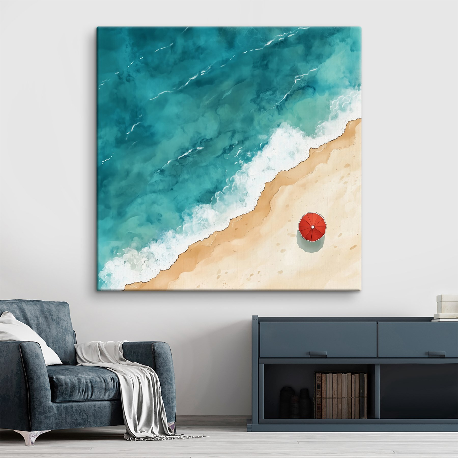 Wyobraź sobie, że wchodzisz do pokoju i od razu czujesz się jak na wakacjach na plaży. Ten druk na płótnie, z żywym czerwonym parasolem siedzącym na szczycie złotych piasków i błękitnych fal, właśnie to robi. To jak mała ucieczka, która szepcze: “Zrób sobie przerwę”. Wyobraź sobie, że wisi w Twojej przestrzeni życiowej, wywołując marzenia o słonecznych wybrzeżach i słonej bryzie. Przyjaciele mogą rzucić okiem i poczuć natychmiastową poprawę – może nawet zainspiruje to dzień na plaży lub przynajmniej lody na podwórku! To idealny element dla każdego, kto chce dodać odrobinę nadmorskiego uroku i ciepła do swojego wystroju. Kto by pomyślał, że odrobina koloru i spokojnej atmosfery może odmienić pomieszczenie?