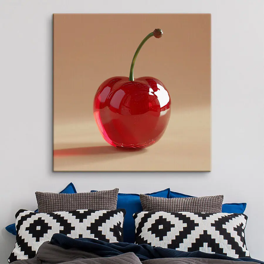 Rozjaśnij każdą przestrzeń dzięki temu wspaniałemu wydrukowi na płótnie przedstawiającemu wiśnię, która praktycznie wyskakuje ze ściany. Wyobraź sobie, że przechodzisz obok niego w kuchni lub jadalni i nagle masz ochotę na kawałek ciasta lub wysoką szklankę wiśniowego napoju gazowanego. Bogata, soczysta czerwień wiśni w połączeniu ze świeżą zieloną łodygą dodaje zabawnego akcentu – to jak wesołe mrugnięcie w pokoju. Idealny dla każdego, kto uwielbia dziwaczne dekoracje, które pobudzają do rozmów, ten nadruk może przynieść odrobinę nostalgii za latami spędzonymi w sadach, dzięki czemu każde spojrzenie jest spacerem po ścieżce wspomnień.