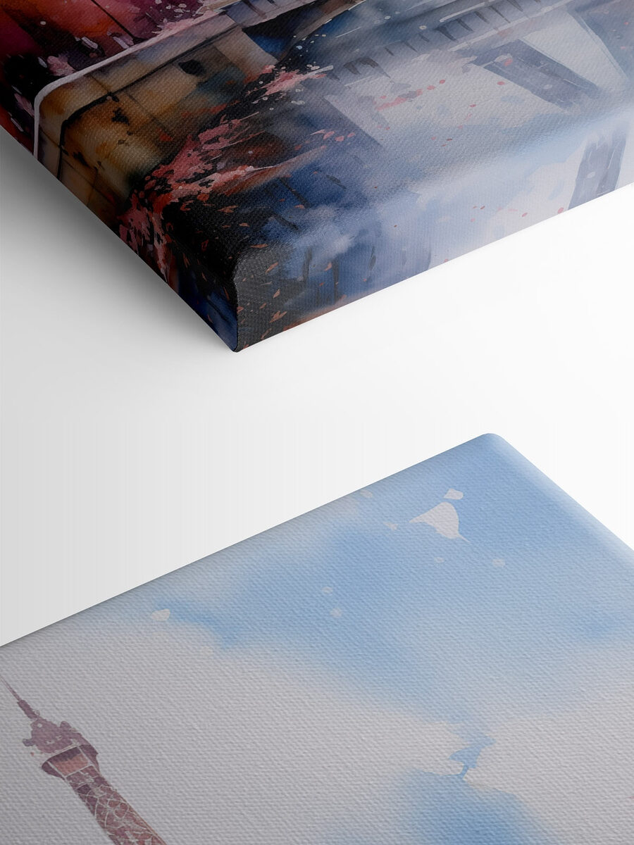 Odmień swoją przestrzeń dzięki temu czarującemu drukowi na płótnie z akwarelą przedstawiającą wspaniałą wieżę otoczoną kwitnącymi różowymi kwiatami i uroczym mostem. Wyobraź sobie, że popijasz kawę w leniwe popołudnie, czując delikatną bryzę, a miękkie kolory przenoszą Cię do spokojnego parku nad rzeką. Żywe odcienie mogą rozjaśnić każdą ścianę, sprawiając, że każde spojrzenie będzie jak mini ucieczka do bardziej wymarzonego miejsca. Idealny do dodania charakteru do salonu lub przytulnego zakątka, ten nadruk szepcze o pięknie natury i romantycznym spacerze wśród kwiatowych cudów. Kto nie chciałby odrobiny tej magii na swoich ścianach?