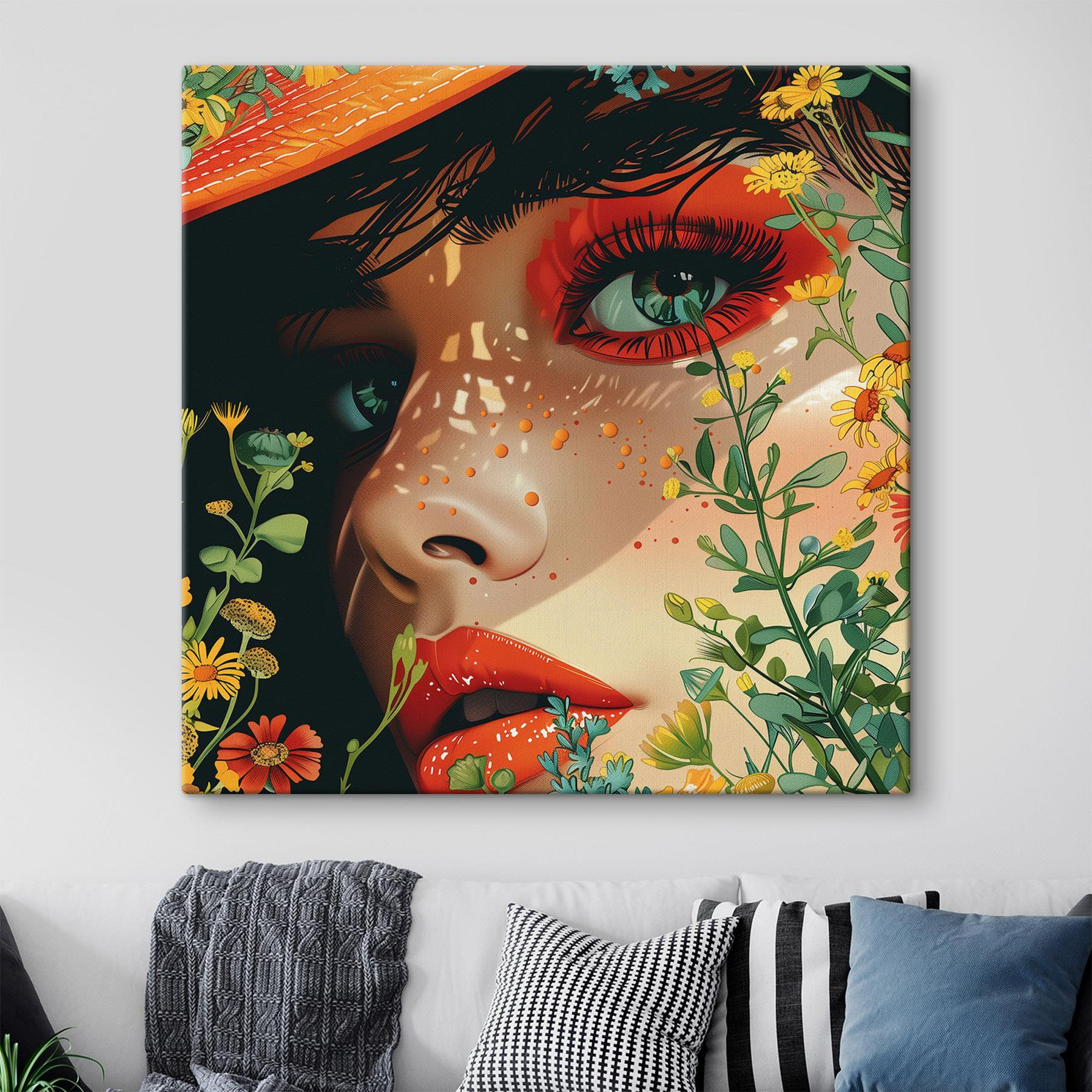 Jasny i pełen życia, ten wydruk na płótnie przedstawiający kobietę w kapeluszu otoczoną kwiatami doda odrobinę magii do każdej przestrzeni. Wyobraź sobie, że wchodzisz do pokoju i witasz się z jej czarującym spojrzeniem – te figlarne piegi i żywe kolory są jak powiew świeżego powietrza. Idealny do przytulnego kącika lub inspirującego miejsca pracy, wnosi odrobinę natury do wnętrza. To jak mały ogródek, którego nie trzeba podlewać! Świetnie nadaje się do pobudzania rozmów, szepcząc historie o słonecznych dniach i kwitnących przygodach. Poważnie, kto nie pokochałby codziennej dawki kwiatowej radości?