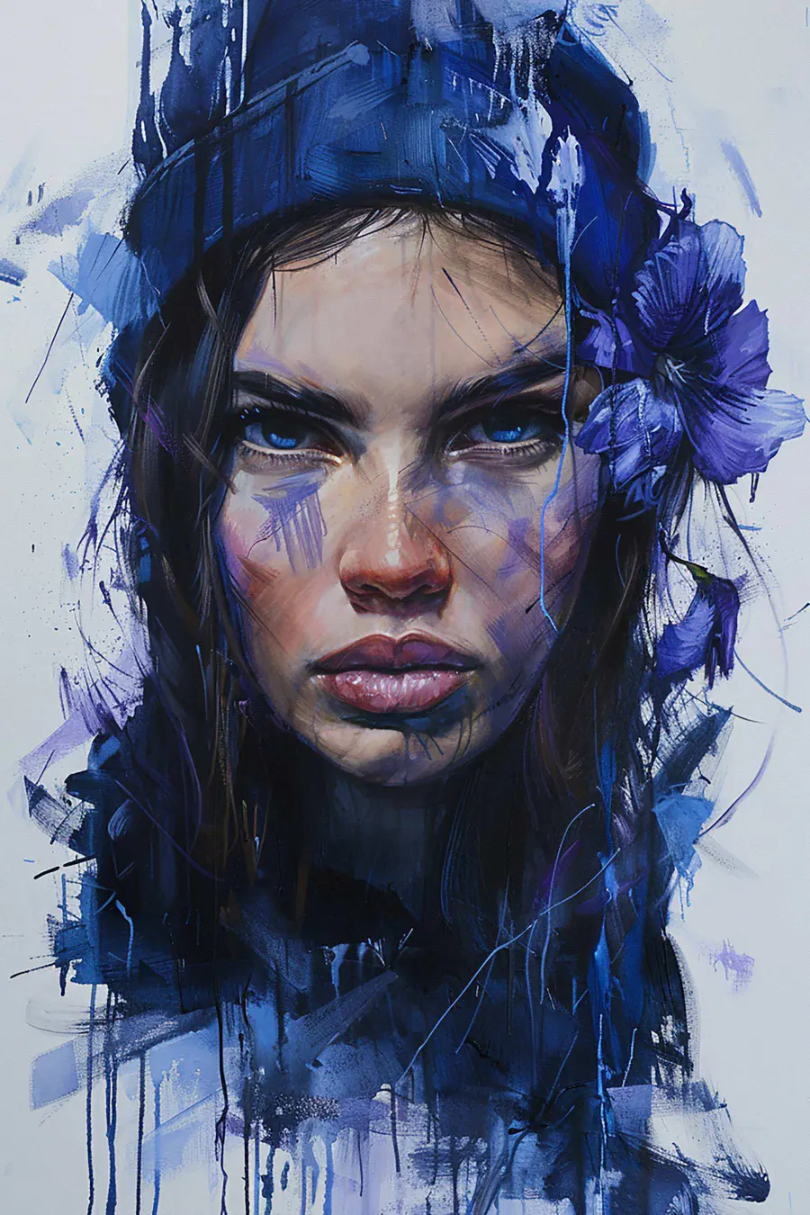 Ten wydruk na płótnie, przedstawiający uderzającą kobietę ozdobioną pięknymi niebieskimi kwiatami we włosach, jest idealnym początkiem rozmowy. Wyobraź sobie, że wchodzisz do pokoju i wita Cię jej intensywne spojrzenie – to tak, jakby znała wszystkie Twoje sekrety! Bogaty błękit i żywe płatki tworzą atmosferę, która jest zarówno uspokajająca, jak i energetyzująca, dobrze współgrając z wystrojem. Powieś go w przytulnym zakątku lub nad kanapą i obserwuj, jak przyciąga wzrok i pobudza wyobraźnię. To nie tylko sztuka ścienna; to zaproszenie do marzeń, odkrywania emocji i doceniania wyjątkowego piękna. Każde spojrzenie na to dzieło może wywołać odrobinę radości lub wspomnień. Kto by tego nie chciał?