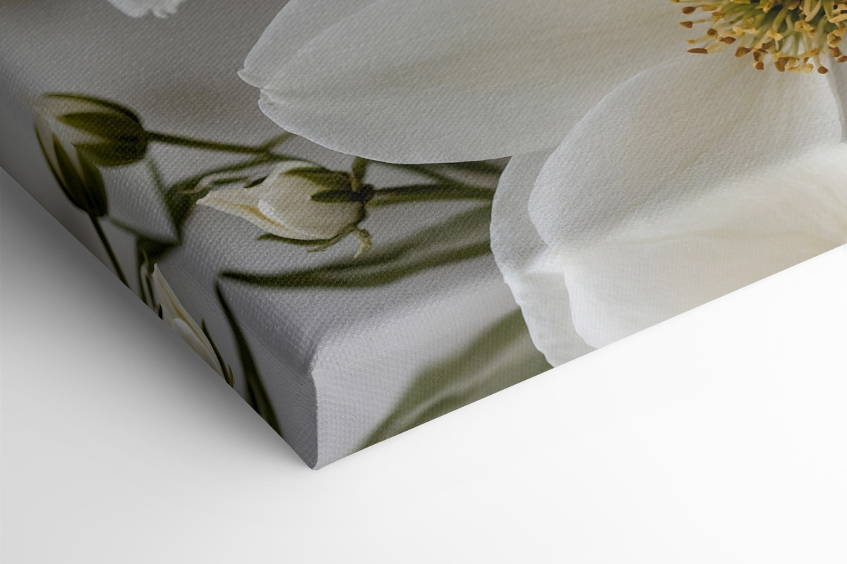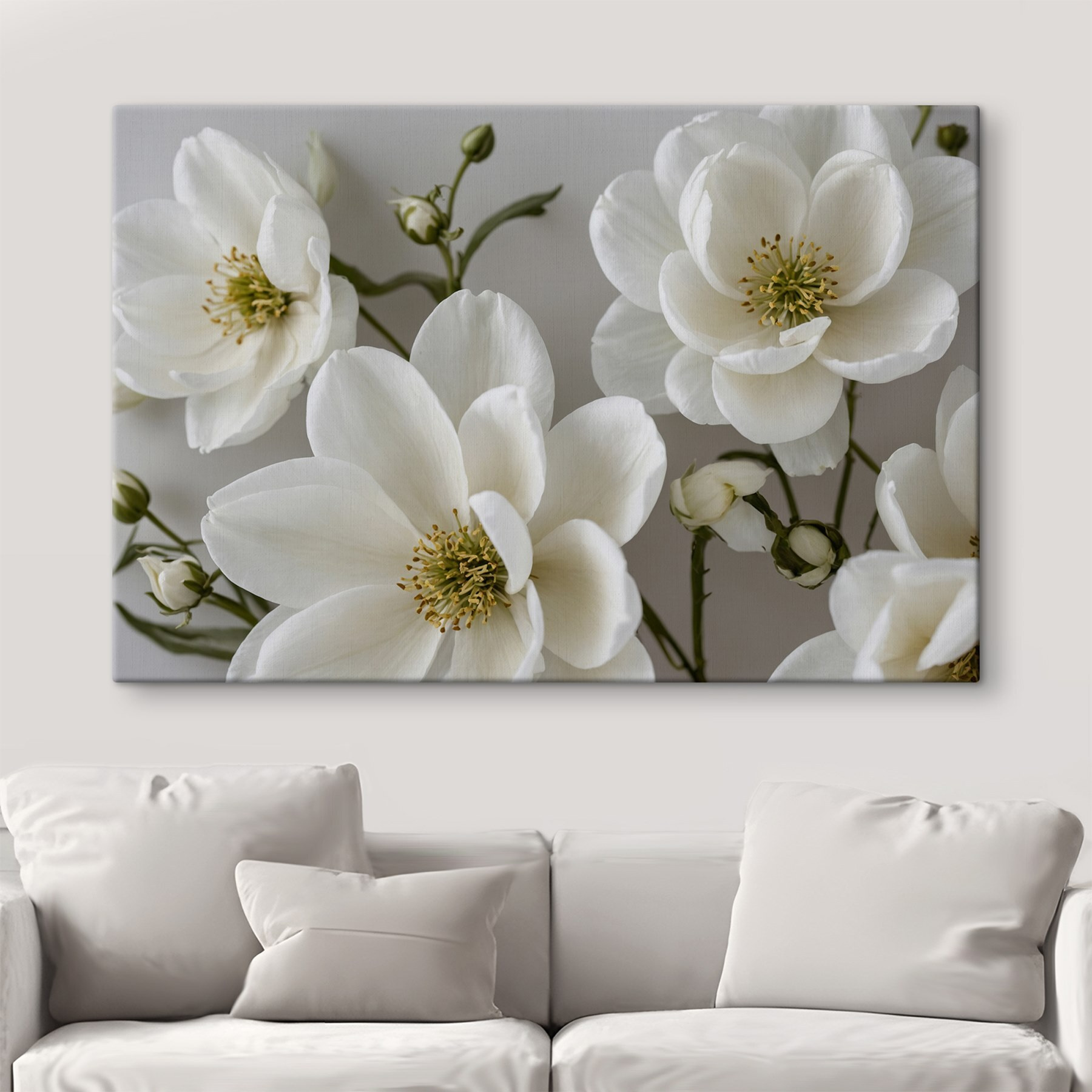 Rozjaśnij swoją przestrzeń dzięki temu oszałamiającemu obrazowi “Obraz Group of White Flowers”. Wyobraź sobie, że wchodzisz do pokoju i witają Cię te eleganckie kwiaty – tak świeże, że mogą kołysać się na delikatnym wietrze. Miękkie płatki i delikatna zieleń oddają istotę natury bez konieczności przebywania na zewnątrz. Idealny do przytulnego kącika do czytania lub minimalistycznego salonu, dodaje uroku i spokoju. Wyobraź sobie, jak zwijasz się w kłębek z filiżanką herbaty, wpatrujesz się w te piękne kwiaty i czujesz, jak ogarnia cię fala spokoju. Kto by pomyślał, że płótno może mieć taki klimat?