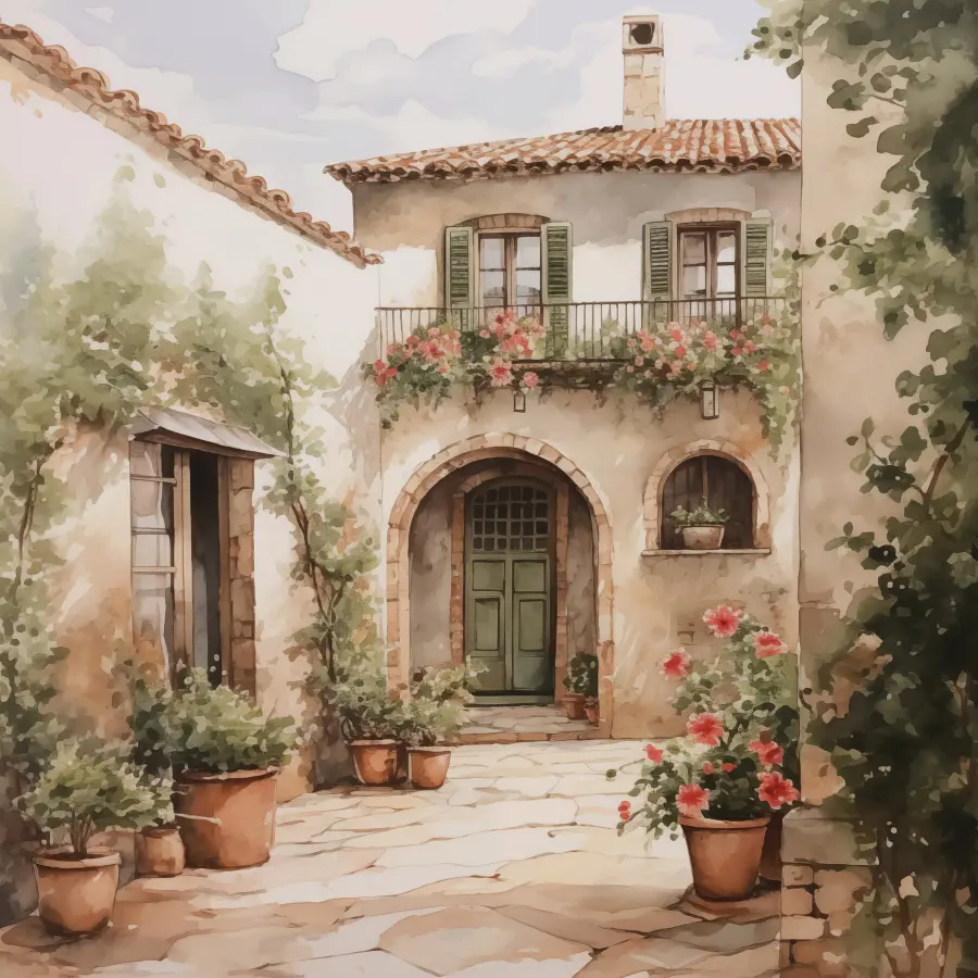 Wkrocz do świata, w którym urok łączy się ze spokojem dzięki temu zachwycającemu drukowi na płótnie. Ta scena przytulnego domu otoczonego wesołymi roślinami doniczkowymi wnosi odrobinę natury do każdej przestrzeni. Wyobraź sobie popijanie kawy w słoneczny poranek, podczas gdy żywe kwiaty machają na powitanie. Delikatne kolory tworzą ciepłą, zachęcającą atmosferę – to jak mała ucieczka od codziennej harówki. Idealny do salonu lub przytulnego zakątka, szepcze opowieści o idyllicznych domach. Dodaj szczyptę osobowości do tych gołych ścian; nikt nigdy nie powiedział, że wystrój nie może być konwersacyjny! Niezależnie od tego, czy jest to rozmowa z przyjaciółmi, czy chwila spokoju, ten nadruk sprawi, że każde spojrzenie będzie wyjątkowe.
