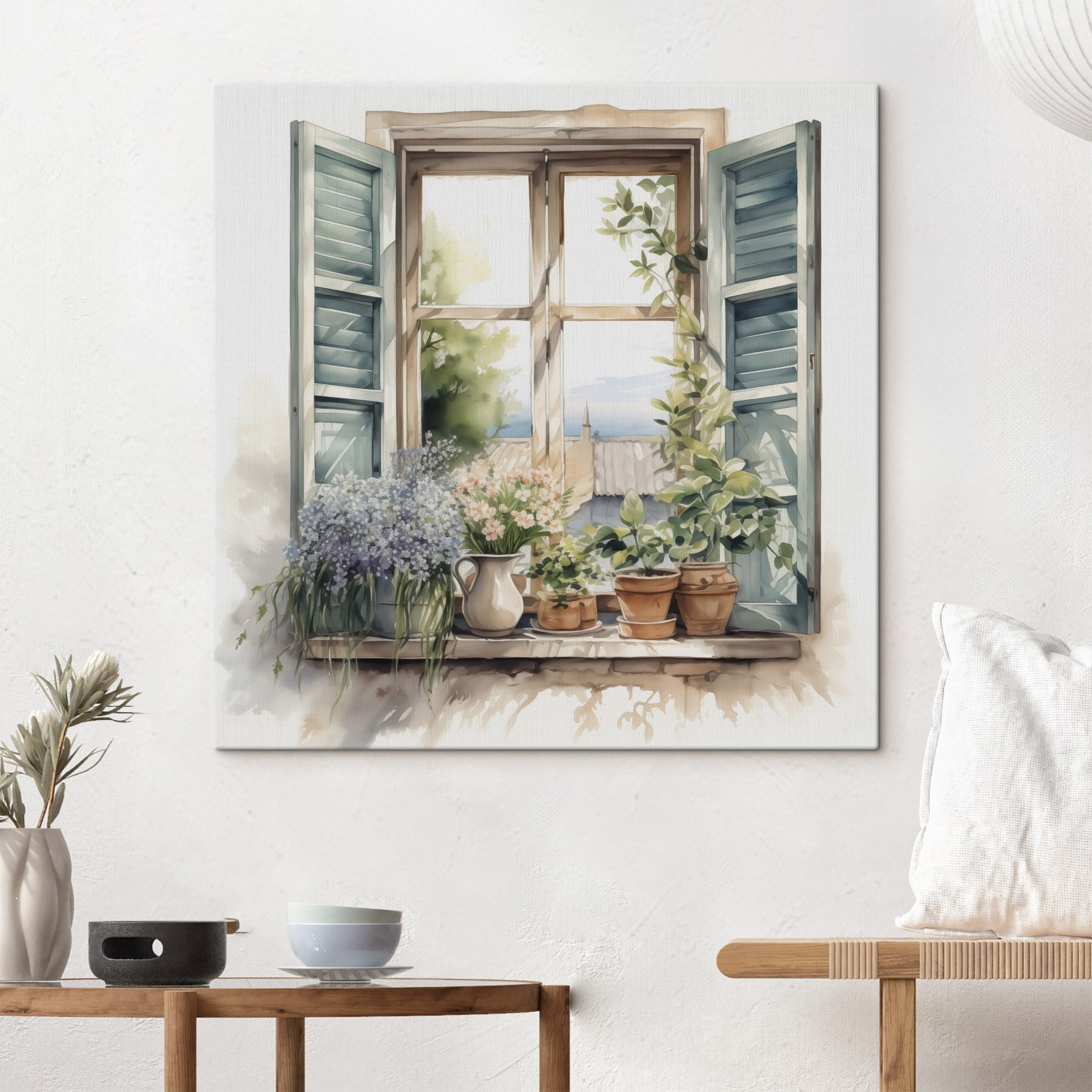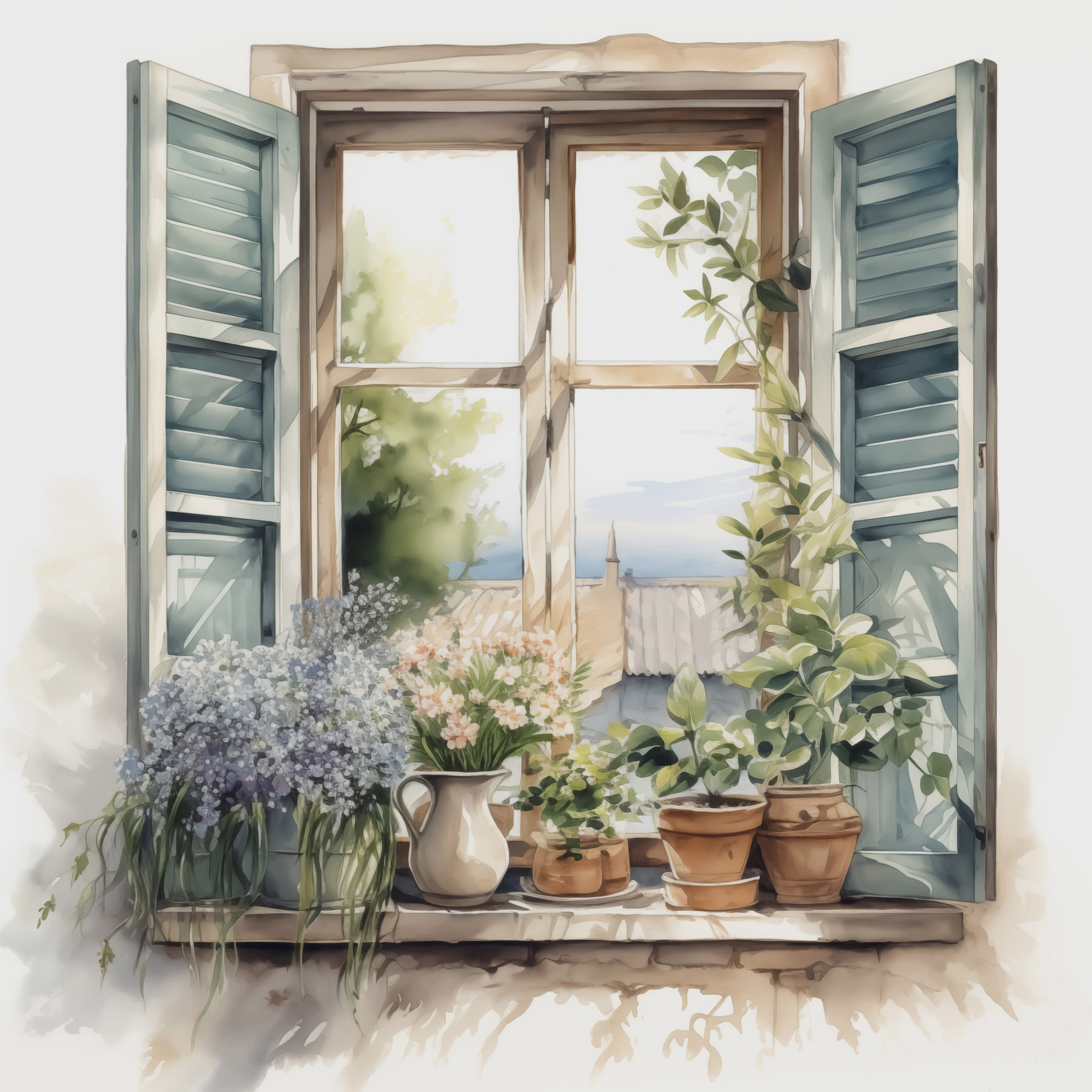 Odmień swoją przestrzeń dzięki temu zachwycającemu akwarelowemu obrazowi przedstawiającemu okno pełne roślin doniczkowych. Wyobraź sobie, że codziennie przechodzisz obok tej uroczej sceny – światło słoneczne wpada przez okiennice, a te żywe rośliny szepczą tajemnice piękna natury. Każdy kwiat i liść wydaje się niemal żywy, zachęcając do zatrzymania się i głębokiego oddechu. To jak mini ogród, który nie wymaga podlewania! Idealna do przytulnych zakątków lub ścian potrzebujących odrobiny świeżości, ta grafika bez wysiłku przynosi radość. W końcu kto nie chciałby odrobiny natury w swoim wnętrzu?