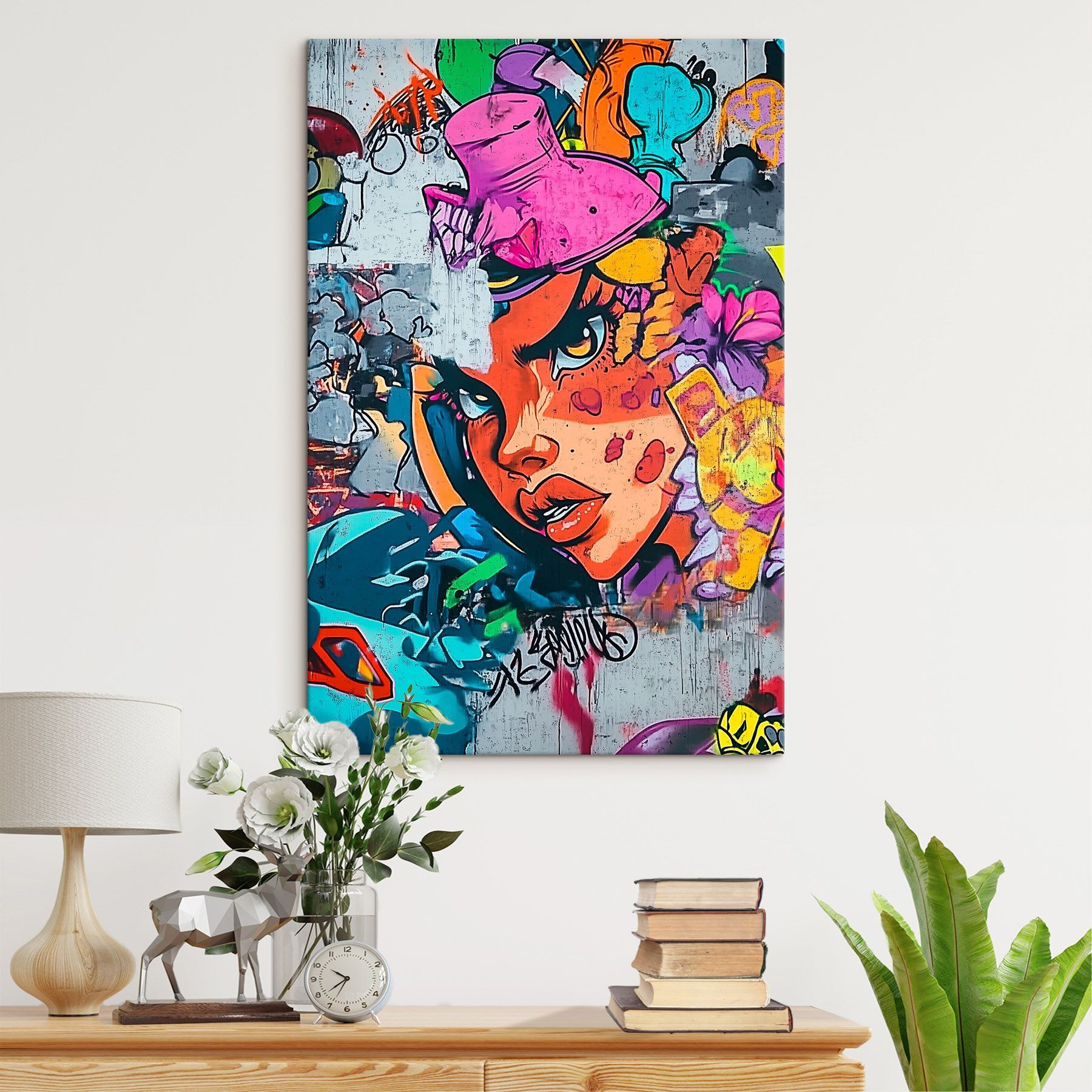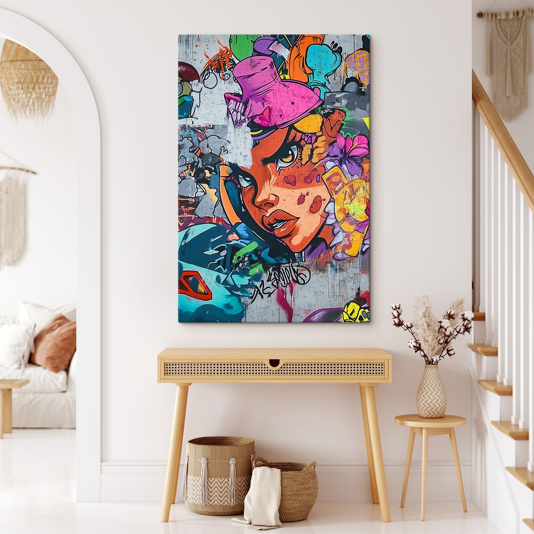 Rozjaśnij każdą przestrzeń dzięki temu urzekającemu obrazowi “Graffiti na ścianie”. Żywe kolory i uderzające obrazy opowiadają historie, o których nawet nie wiedziałeś, że trzeba je opowiedzieć. Wyobraź sobie, że wchodzisz do pokoju i wita Cię przypływ energii – to jak impreza bez sprzątania. Ta grafika wnosi żywy, miejski klimat, który przekształca nudne ściany w miejsca zachęcające do rozmowy. Idealna do przytulnego zakątka lub tętniącego życiem salonu, wzbudza ciekawość i dodaje odrobinę ulicznego stylu. Poza tym, kto nie chciałby odrobiny koloru, która praktycznie ma własną ścieżkę dźwiękową? Przygotuj się, aby cieszyć się atmosferą!