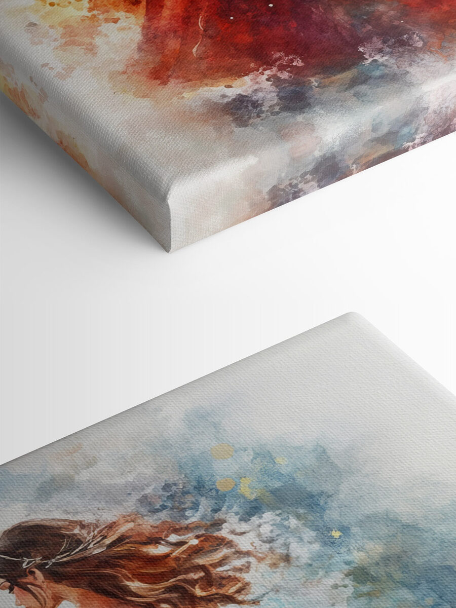 Odmień każdą przestrzeń dzięki temu oszałamiającemu wydrukowi na płótnie przedstawiającemu kobietę w czerwonej sukience. To tak, jakby szybowała prosto ze snu, uchwycając ten idealny moment, w którym elegancja spotyka się z kaprysem. Żywe odcienie i miękkie akwarelowe pociągnięcia tworzą poczucie ruchu, które wydaje się niemal żywe, dodając odrobinę dramatyzmu do ścian.