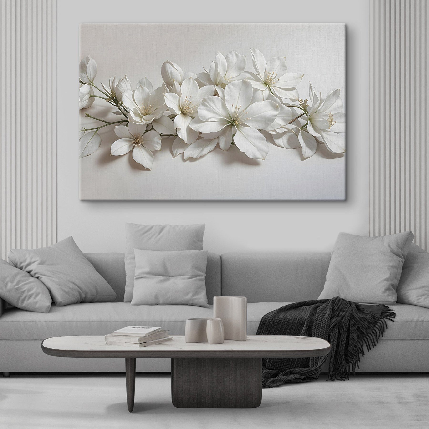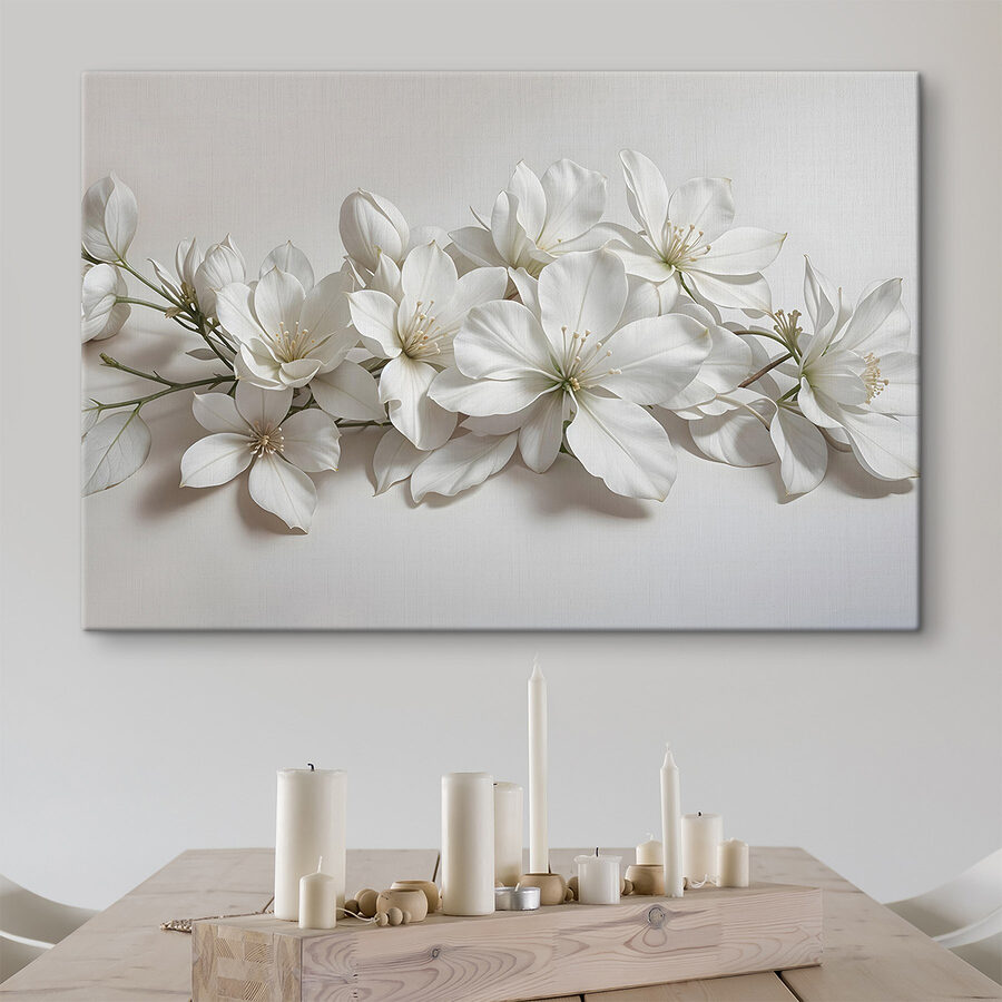 Odmień każdą przestrzeń dzięki temu uroczemu obrazowi na płótnie “Obraz Group of White Flowers”. Wyobraź sobie te piękne chwile, kiedy świeże kwiaty wywołują uśmiech – ta grafika doskonale oddaje to uczucie. Delikatne kwiaty zdają się szeptać miękkie sekrety natury, zapraszając ciepło i spokój do domu. To tak, jakby mieć mały ogródek na ścianie, bez konewki. Idealny do rozjaśnienia przytulnego zakątka lub odświeżenia salonu. Zaufaj mi, każde spojrzenie jest jak powiew świeżego powietrza. Kto nie chciałby odrobiny kwiatowej radości?