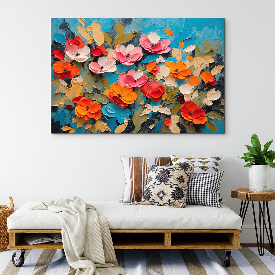 Rozjaśnij każde pomieszczenie dzięki temu wspaniałemu drukowi na płótnie przedstawiającemu żywe kwiaty tańczące na uderzającym niebieskim tle. To tak, jakby ogród wybuchł na ścianach, przynosząc świeże wiosenne uczucie w pomieszczeniach, bez konieczności posiadania zielonego kciuka. Każdy kwiat ma swoją osobowość – wyobraź sobie, jak może wywołać radość w przytulnym zakątku lub tętniącej życiem przestrzeni spotkań. Przyjaciele z pewnością będą go podziwiać, a może nawet uśmiechną się świadomie, jakby niemal czuli zapach kwitnących płatków. To początek rozmowy, plusk szczęścia – idealny dla tych, którzy cenią sztukę, która jest żywa i nieco zabawna. Zdecydowanie pozycja obowiązkowa dla miłośników kwiatów!