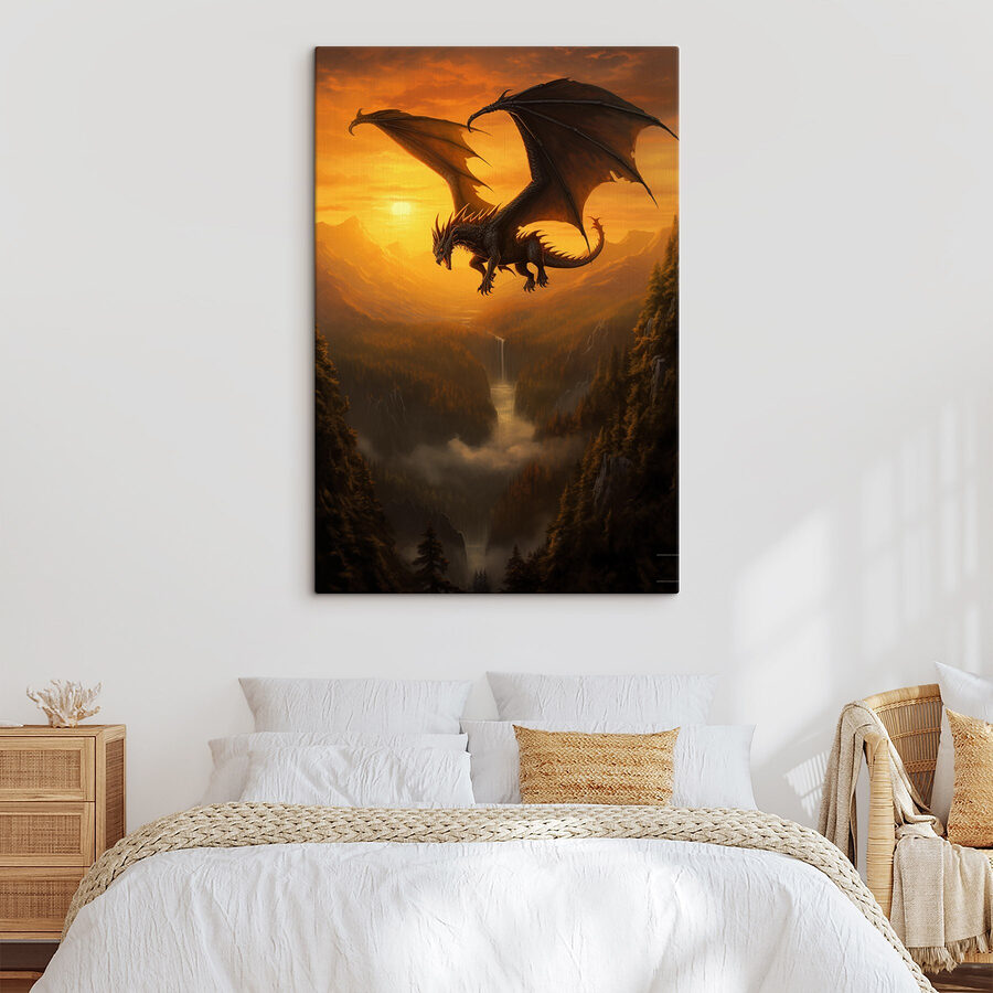 Wprowadź odrobinę przygody do swojej przestrzeni dzięki temu wspaniałemu obrazowi na płótnie “Dragon Flying Over a Valley”. Wyobraź to sobie: majestatyczny smok szybujący przez ognisty zachód słońca, z szeroko rozpostartymi skrzydłami, jakby zapraszał cię do przyłączenia się do jego mistycznej podróży. Żywe kolory i dramatyczna sceneria tworzą poczucie zachwytu, sprawiając, że każde spojrzenie jest jak mini ucieczka. Idealna do salonu lub przytulnego kącika do czytania, ta grafika pobudza rozmowy i rozpala wyobraźnię. To rodzaj dzieła, które przenosi cię do innego świata, a może nawet wywołuje opowieść lub dwie. Kto nie chciałby mieć odrobiny magii na swoich ścianach?