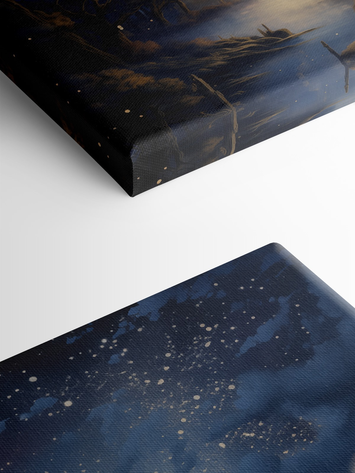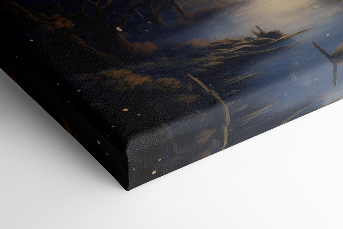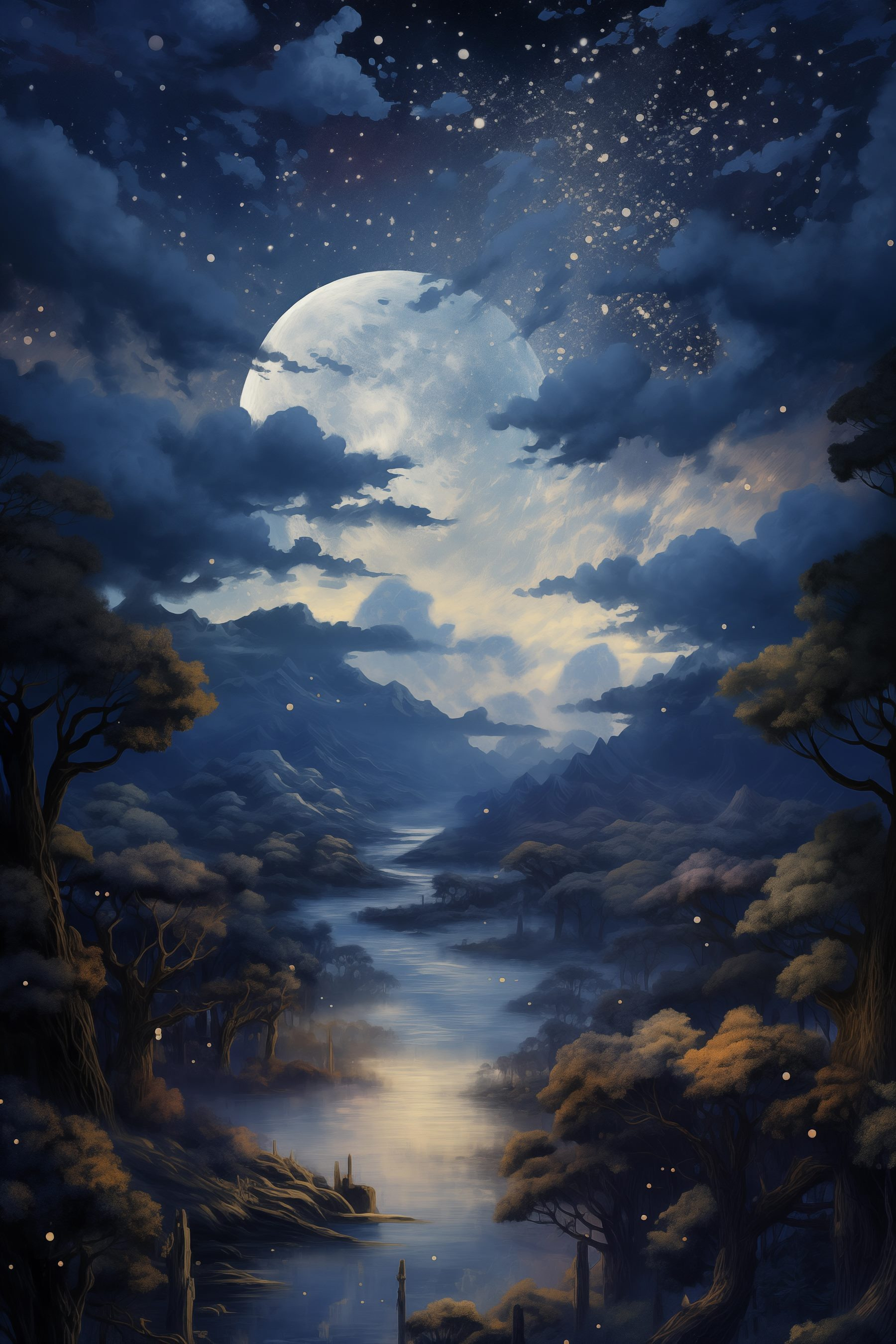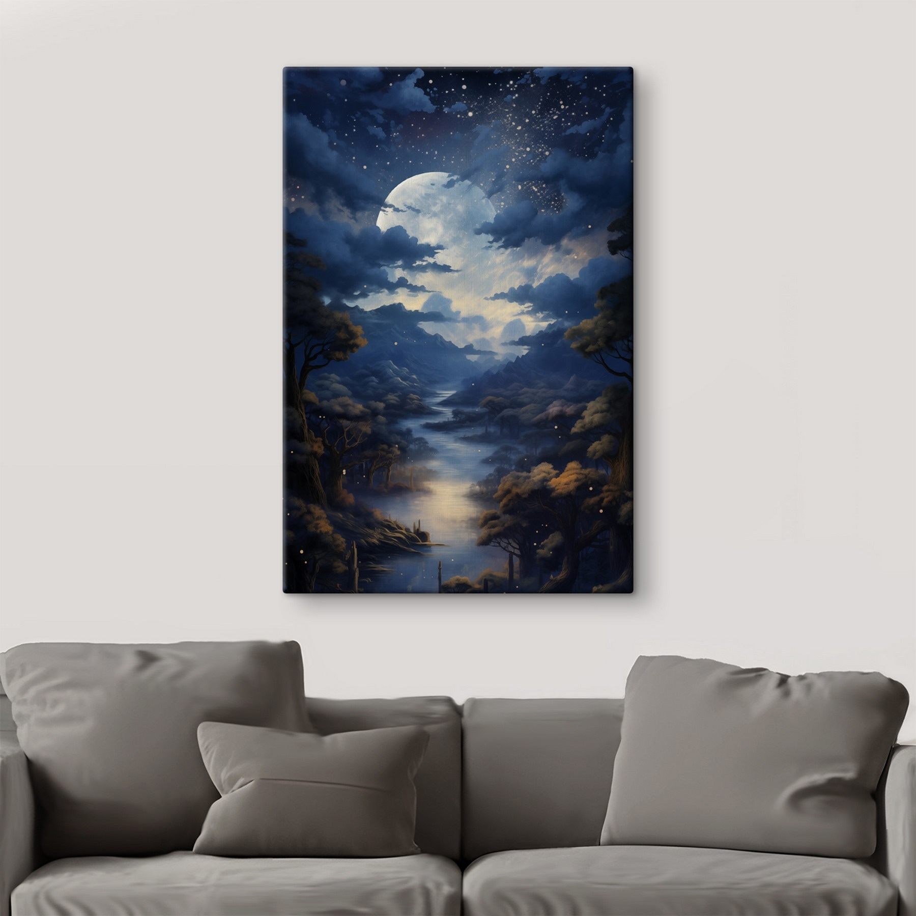Wyobraź sobie pogodny wieczór, księżyc rzucający delikatny blask na spokojną rzekę. Ten wydruk na płótnie “Moon over a River” przenosi tę spokojną scenę wprost do Twojego domu. Dzięki delikatnym błękitom i uspokajającym cieniom zaprasza do poczucia relaksu, dzięki czemu idealnie nadaje się do przytulnego kącika do czytania lub pustej ściany, która błaga o odrobinę miłości. Wyobraź sobie, jak zwijasz się w kłębek z filiżanką herbaty, a delikatne odcienie owiewają cię jak chłodna bryza. To jak mini ucieczka na łono natury bez opuszczania swojego miejsca – kto by tego nie chciał? Ponadto jest to świetny początek rozmowy. Przygotuj się na komplementy!