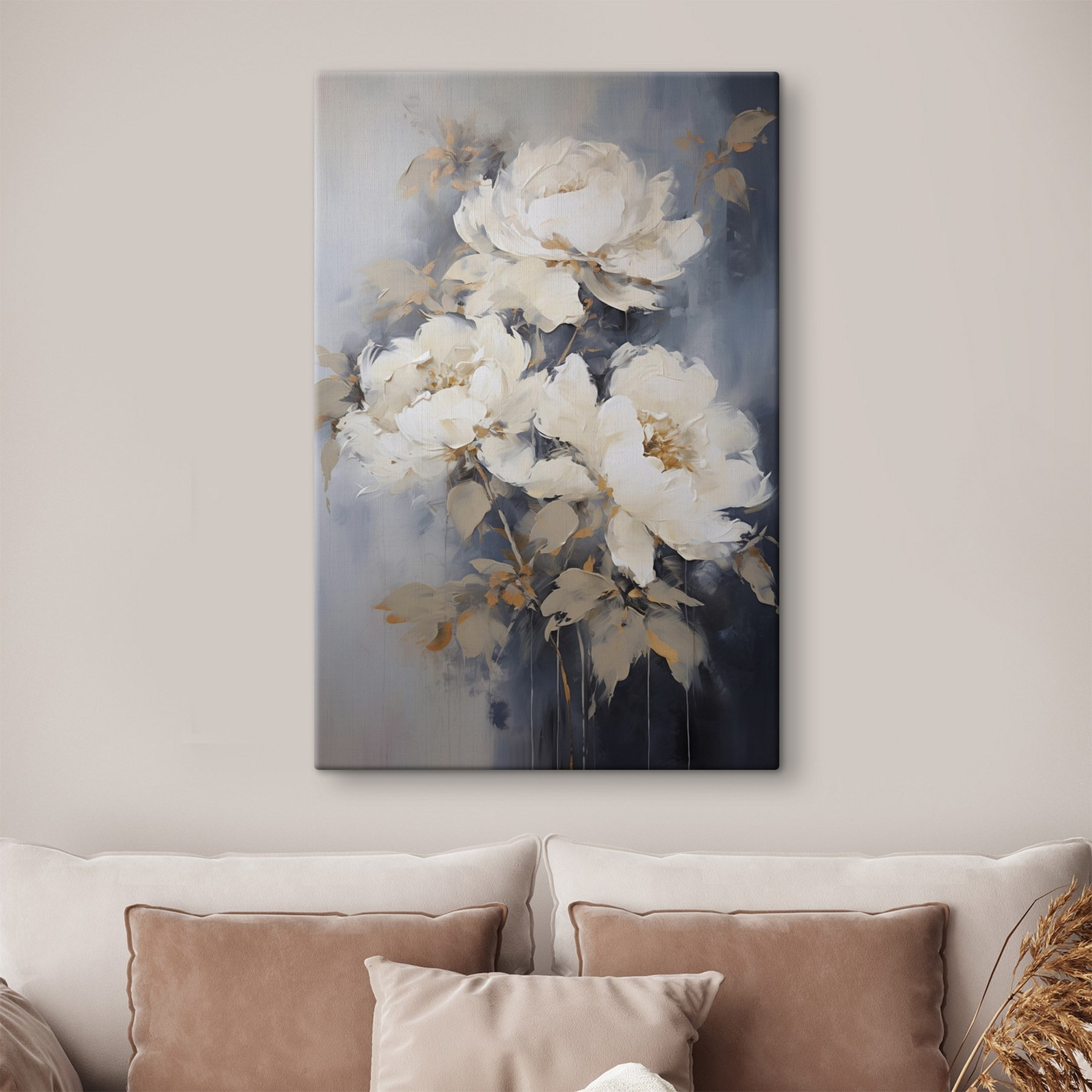 Odmień każdą przestrzeń dzięki temu wspaniałemu obrazowi na płótnie przedstawiającemu białe kwiaty. To jak powiew świeżego powietrza w Twoim domu. Wyobraź sobie: popijasz kawę w leniwy niedzielny poranek, a te eleganckie kwiaty przyciągają wzrok, natychmiast poprawiając nastrój. Miękkie, delikatne pociągnięcia pędzla tworzą głębię, która wciąga, sprawiając, że każde spojrzenie jest jak mini ucieczka do spokojnego ogrodu. To nie tylko dzieło sztuki; to początek rozmowy, rozgrzewający i zachęcający, idealny do przytulnego salonu lub spokojnego kącika sypialni. Daj swoim ścianom trochę miłości!
