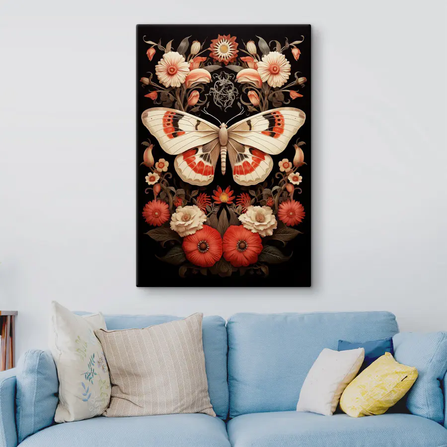 Odmień każdą przestrzeń dzięki temu wspaniałemu drukowi na płótnie przedstawiającemu motyla i żywe kwiaty na bogatym czarnym tle. To jak zaproszenie natury do swojego domu, ale bez ryzyka przyciągnięcia brzydkich owadów! Wyobraź sobie, że przechodzisz obok niego codziennie i czujesz się trochę podniesiony na duchu, jakby każdy kwiat szeptał sekret lub dzielił się uśmiechem. To dzieło sztuki może wywołać rozmowę i rozjaśnić nudny kąt, zamieniając go w coś, co wydaje się ciepłe, zachęcające i odrobinę tajemnicze. To nie tylko dekoracja; to wzmacniacz nastroju! Niezależnie od tego, czy znajduje się w przytulnym zakątku, czy w tętniącym życiem salonie, ten element dodaje elegancji i uroku. Idealny dla osób, które kochają odrobinę koloru i kaprysu w swoim życiu!