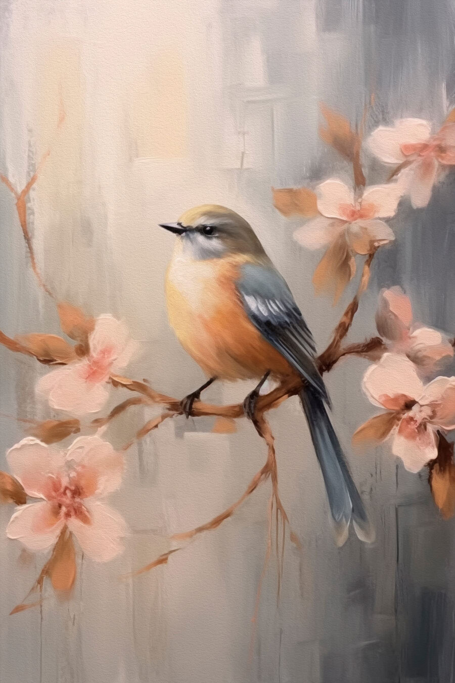 Wnieś odrobinę natury do wnętrza dzięki temu uroczemu drukowi na płótnie przedstawiającemu uroczego ptaszka na delikatnej gałęzi ozdobionej miękkimi różowymi kwiatami. To tak, jakby mieć kawałek świata zewnętrznego w swoim salonie. Wyobraź sobie, że popijasz kawę, podczas gdy ta żywa scena rozjaśnia Twój dzień. Delikatne kolory wywołują poczucie spokoju, dzięki czemu idealnie nadają się do przytulnych zakątków lub spokojnej sypialni. A kto by się nie uśmiechnął na widok wesołego ptaszka czuwającego na straży? To nie tylko dekoracja; to małe przypomnienie, aby zatrzymać się i docenić proste piękno życia.