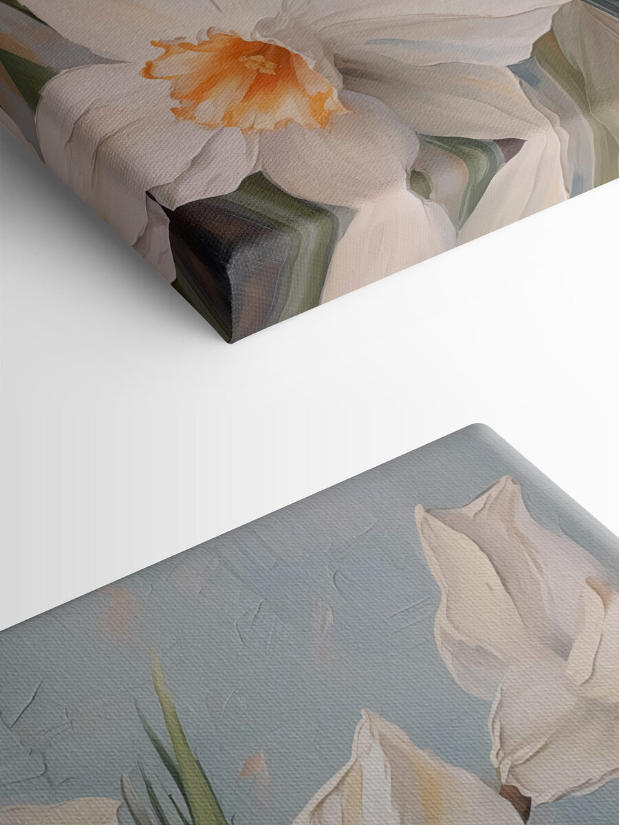 Rozjaśnij każde pomieszczenie za pomocą tego oszałamiającego wydruku na płótnie przedstawiającego białe kwiaty, wprowadzając świeży, naturalny klimat do swojej przestrzeni. Wyobraź sobie ten obraz wiszący w przytulnym zakątku, przez który wpada światło słoneczne, sprawiając, że płatki kwiatów niemal świecą. To jak powiew wiosennego powietrza, zapraszający ciepłem i odrobiną elegancji. Wyobraź sobie, że znajomi wpadają do ciebie, podziwiają go i komentują, jak sprawia, że całe miejsce wydaje się lżejsze i bardziej zachęcające. Dzięki miękkim odcieniom i delikatnym detalom, ten element dodaje odpowiedniego uroku – idealny dla tych, którzy uwielbiają odrobinę natury w pomieszczeniach. Przekształć dowolną ścianę w spokojny azyl. Kto by tego nie chciał?