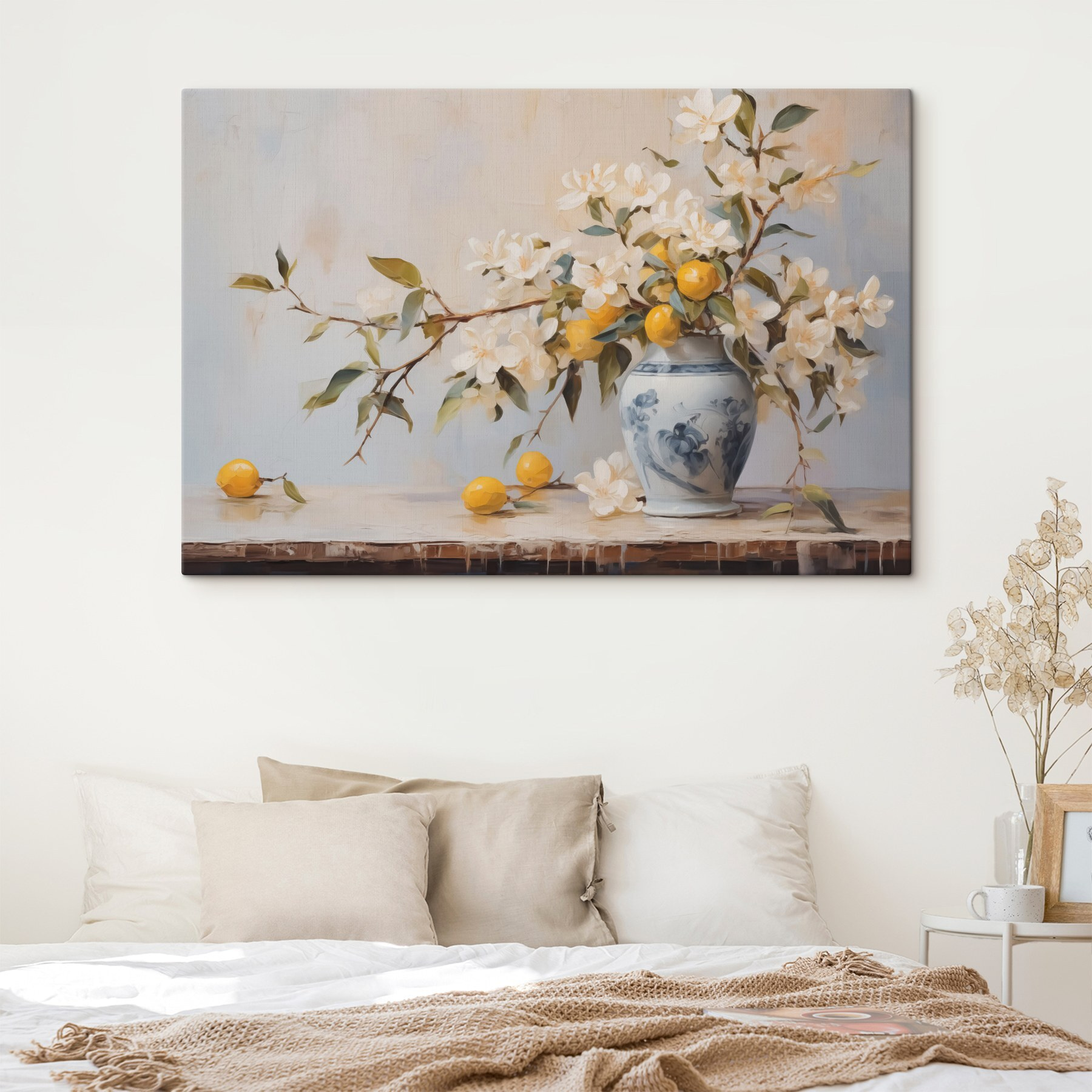 Rozjaśnij każde pomieszczenie za pomocą tego pięknego wydruku na płótnie przedstawiającego wazon wypełniony żywymi kwiatami i cytrynami. To jak przeniesienie słonecznego skrawka natury do wnętrza, bez brzęczących wokół pszczół! Wyobraź sobie ten obraz wiszący w przytulnej kuchni lub wesołym salonie – to odrobina koloru, która poprawi nastrój i pobudzi do rozmowy. Miękkie odcienie i delikatne detale sprawiają, że łatwo zatracić się w jego pięknie. Poza tym, kto nie kocha cytryn? Są one odrobiną szczęścia. Idealny dla każdego, kto chce, aby jego przestrzeń była świeża i zachęcająca!