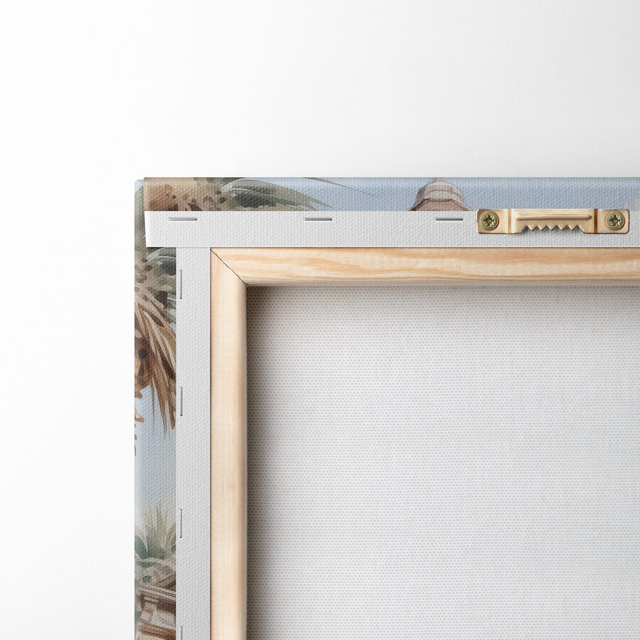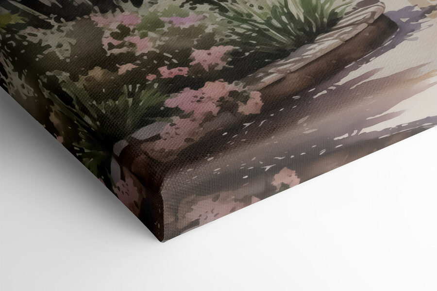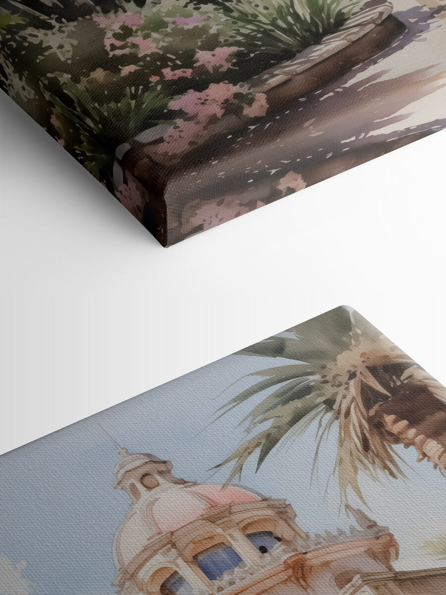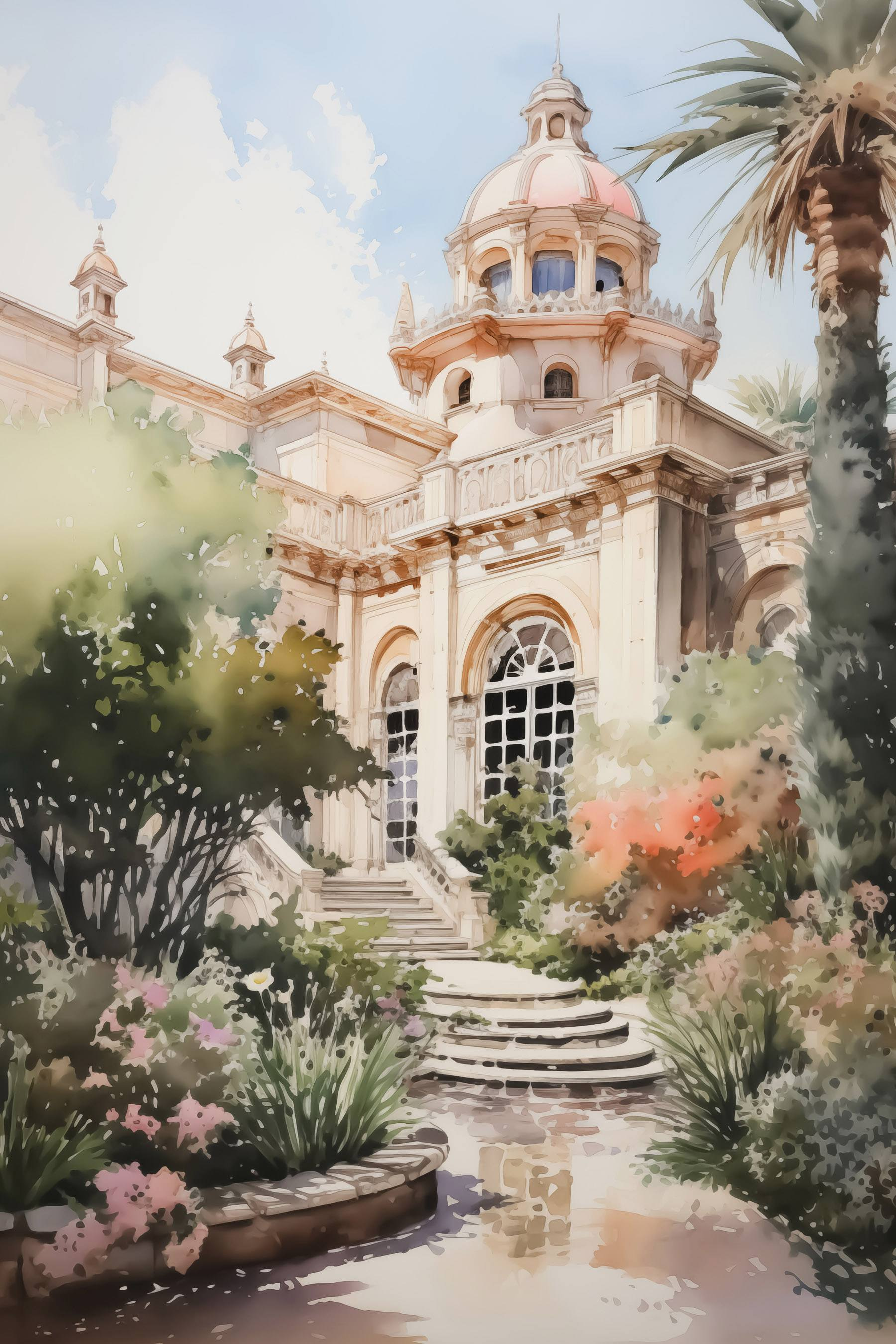 Odmień swoją przestrzeń dzięki temu wspaniałemu akwarelowemu obrazowi na płótnie przedstawiającemu uroczy budynek z wieżą, otoczony bujną zielenią. Wyobraź sobie, jak ten obraz może przyciągnąć Twoich gości, wywołując rozmowy o podróżach, architekturze lub tym razem, gdy przypadkowo zawędrowałeś do ogrodu botanicznego. Delikatne kolory tworzą spokojną atmosferę, idealną do salonów lub przytulnych zakątków. Niezależnie od tego, czy popijasz kawę, czy zagłębiasz się w dobrą książkę, ta grafika zachęca do chwili spokojnej refleksji. Mówimy o wspaniałej ucieczce we własnym domu!