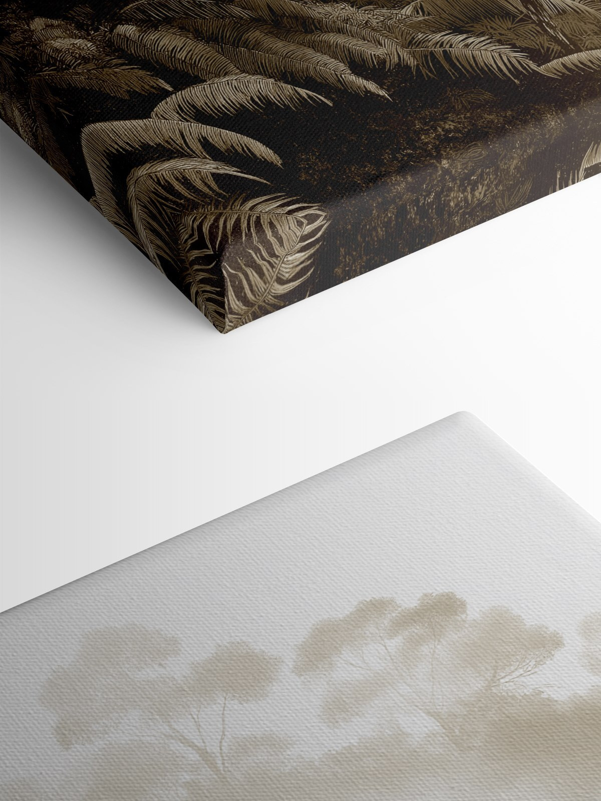 Odmień każdą przestrzeń dzięki temu wspaniałemu drukowi na płótnie przedstawiającemu spokojną grupę palm położonych w bujnym lesie. To jak mała ucieczka bezpośrednio na ścianie. Ziemiste odcienie i delikatne detale przywodzą na myśl spokojne wyjazdy i leniwe dni spędzone na łonie natury. Wyobraź sobie, że popijasz kawę, chłonąc spokojne wibracje – może nawet odrobinę tropikalnej bryzy? Niezależnie od tego, czy wisi w przytulnym salonie, czy w wyluzowanej sypialni, ta grafika wnosi orzeźwiający akcent, który stanowi oświadczenie bez słowa. Jest idealna dla każdego, kto marzy o leśnych spacerach i słonecznych popołudniach. Po co zadowalać się zwyczajnością, skoro można zaprosić do swojego domu kawałek spokoju?