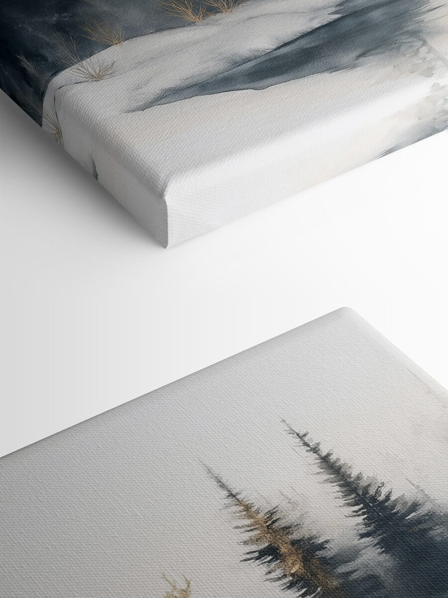 Wejdź do spokojnej ucieczki z tym “Akwarelowym obrazem śnieżnego lasu”. Wyobraź sobie delikatny szum spadających płatków śniegu, gdy ta senna scena rozjaśnia Twoją ścianę. Delikatna mieszanka bieli i stonowanej zieleni przywołuje na myśl przytulny domek w Twoim salonie. Idealny dla tych, którzy cenią sobie spokój natury, jest jak ciepły uścisk w chłodny dzień. Pomyśl też o tym, jak pobudza do rozmów – “Czy to trochę zimowej magii, którą widzę?”. Dodaj go do swojego domu i natychmiast przekształć swoją przestrzeń w spokojne leśne zacisze, bez butów turystycznych!