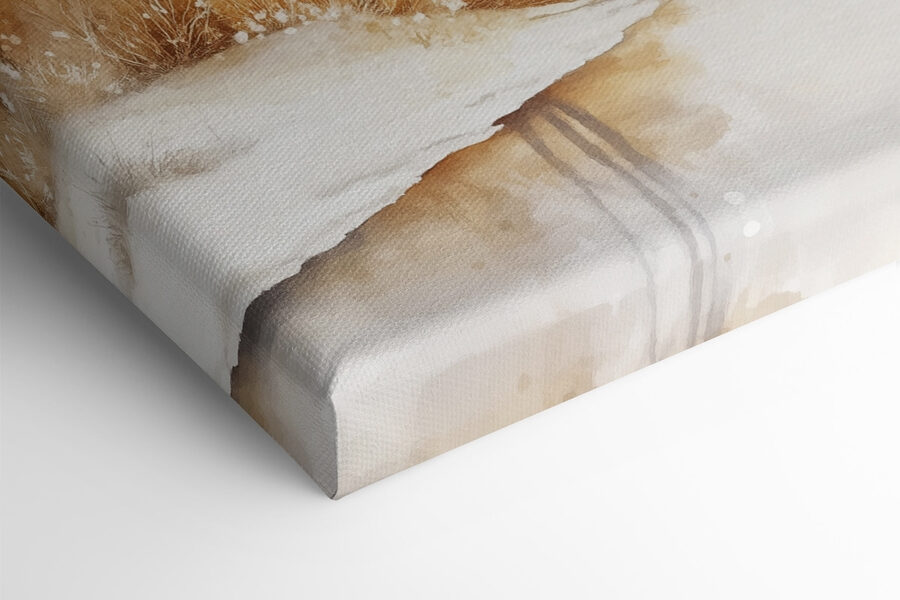 Wyobraź sobie, że przytulasz się w cichym kącie, z kawą w ręku i pozwalasz oczom wędrować po tym oszałamiającym akwarelowym płótnie przedstawiającym rzekę. To jak wejście w delikatny sen, w którym drzewa kołyszą się miękko, a śnieg szepcze tajemnice. Ciepłe odcienie ziemi bez wysiłku łączą się z chłodnymi bielami i szarościami, tworząc spokojną atmosferę, która przemawia do tych zimowych dni, kiedy chcesz po prostu hibernować. Idealny do dodania odrobiny spokoju natury do każdej przestrzeni, ten kawałek może być po prostu spokojną ucieczką, której nie wiedziałeś, że potrzebujesz. Zaufaj mi, to urocze małe marzenie na twojej ścianie!