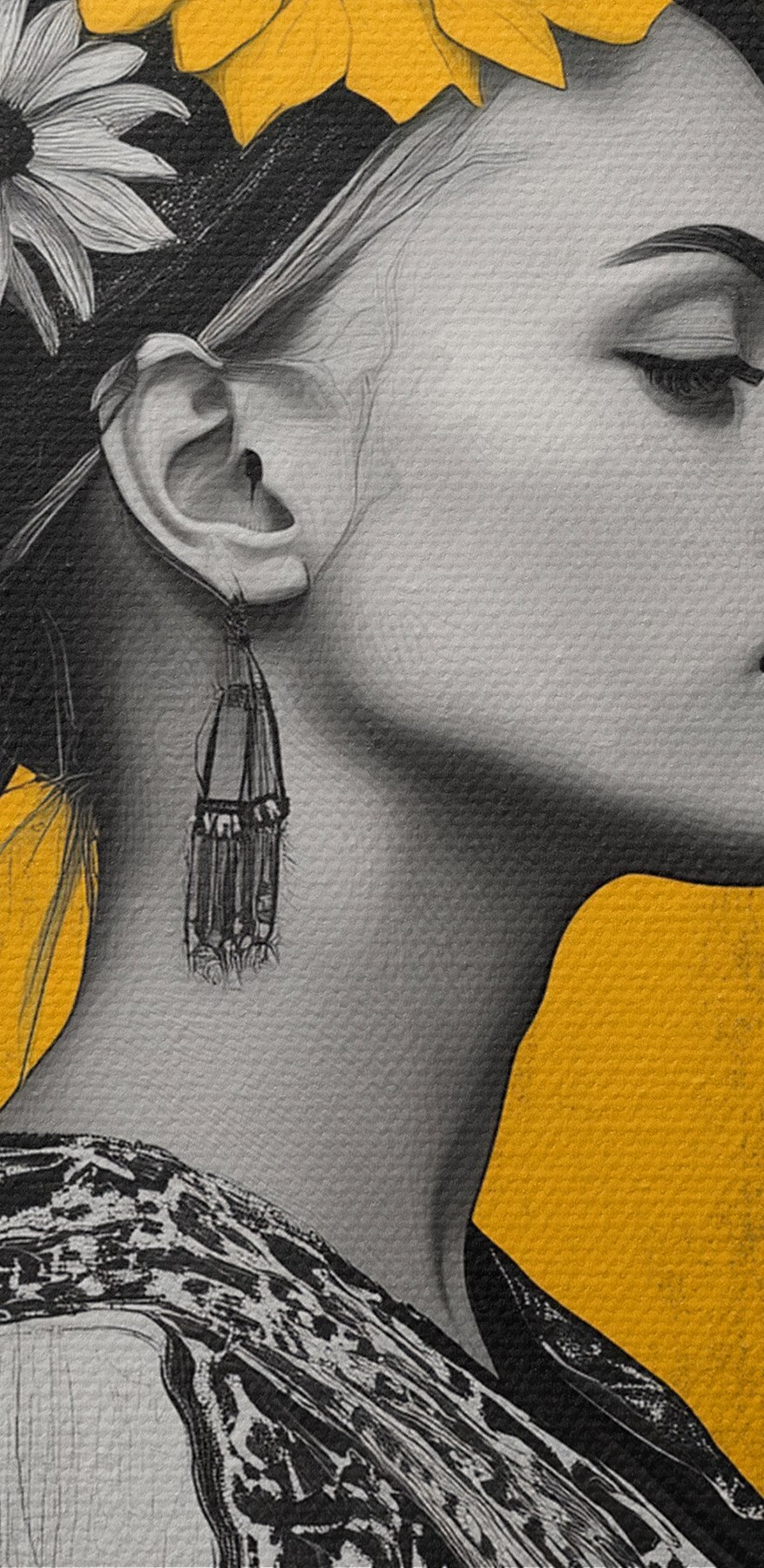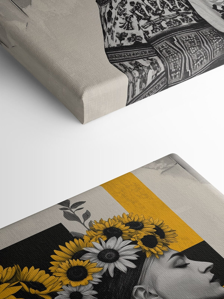 Rozjaśnij każdą przestrzeń dzięki temu żywemu drukowi na płótnie przedstawiającemu trio kobiet zwieńczonych słonecznikami, co jest ukłonem w stronę radości i ciepła. Uderzający kontrast odważnych żółci i delikatnych monochromów bez wysiłku przyciąga wzrok, tworząc zabawny, ale wyrafinowany klimat. Wyobraź sobie, że wisi w przytulnym kąciku do czytania, gdzie wywołuje rozmowy, a może nawet uśmiech lub dwa. Idealny dla tych, którzy kochają piękno natury i artystyczny styl, dodaje tego wyjątkowego akcentu – jak powiew świeżego powietrza w słoneczny dzień. To coś więcej niż tylko wystrój; to uczucie.