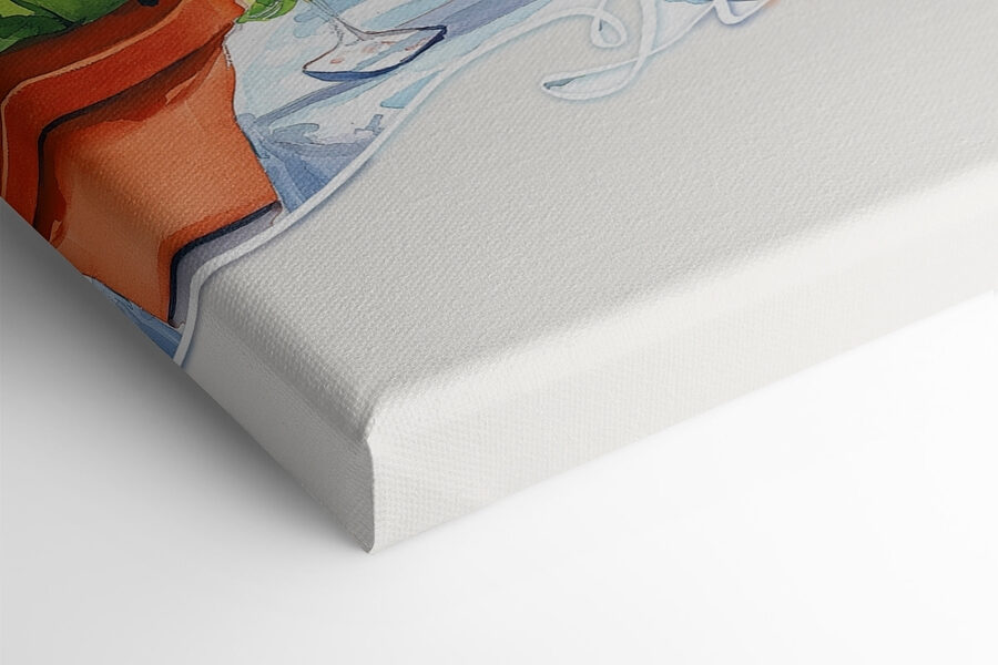 Odmień każdą przestrzeń dzięki temu pięknemu obrazowi na płótnie “Watercolor Painting of a Table with Drinks and a View of a Lake”. Wyobraź sobie, że popijasz koktajl, podziwiając wspaniały widok na jezioro – to jak mini-wakacje w domu! Żywe kolory sprawiają, że jest to zachwycający punkt centralny. Ta grafika oddaje ten idylliczny, skąpany w słońcu dzień, w którym zmartwienia odpływają, podobnie jak puszyste chmury na niebie. Wnosi odrobinę śródziemnomorskiej magii, idealnej do rozjaśnienia przytulnego kącika lub wyeksponowania nad jadalnią. Któż nie chciałby poczuć odrobiny tego spokojnego klimatu? Idealne połączenie natury i miejskich krajobrazów dla entuzjastów dekoracji!